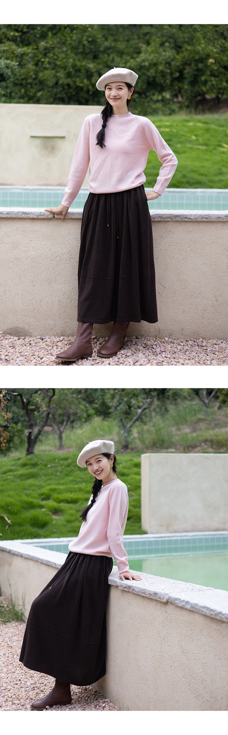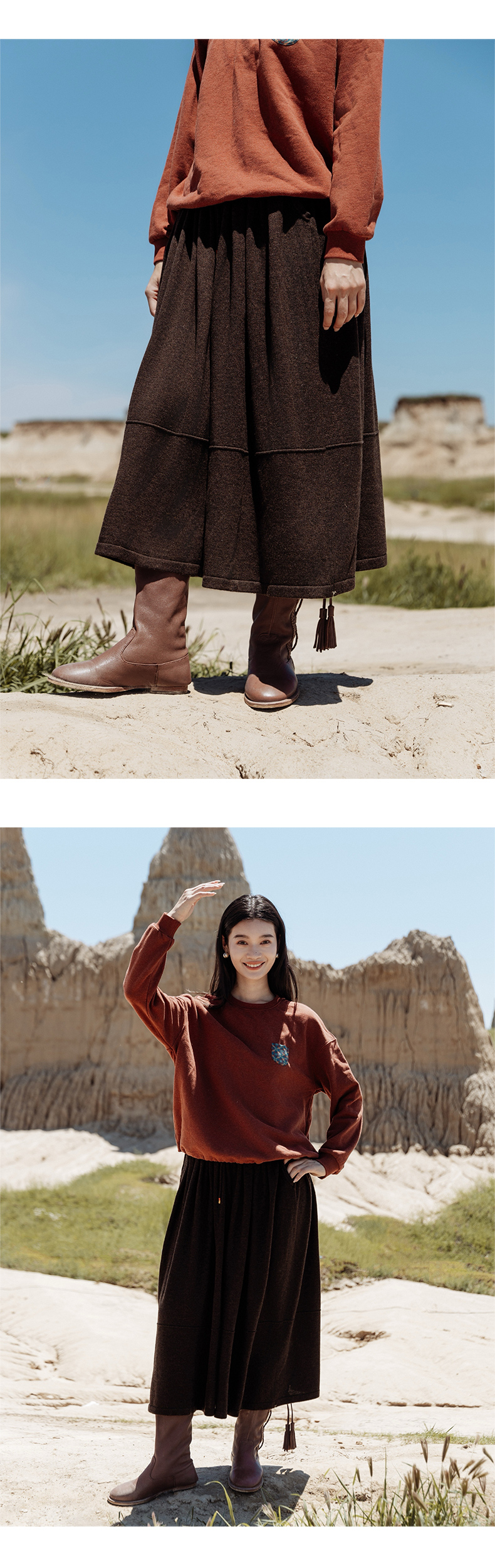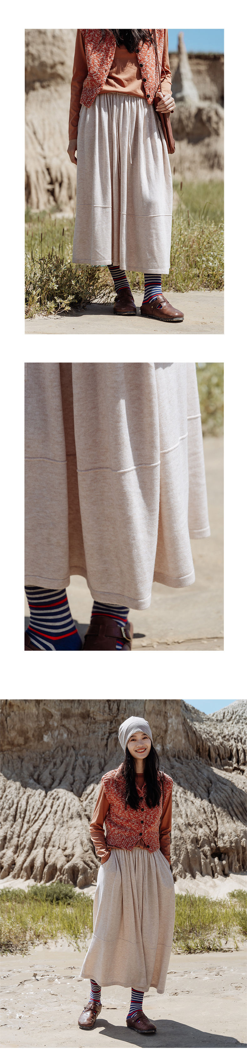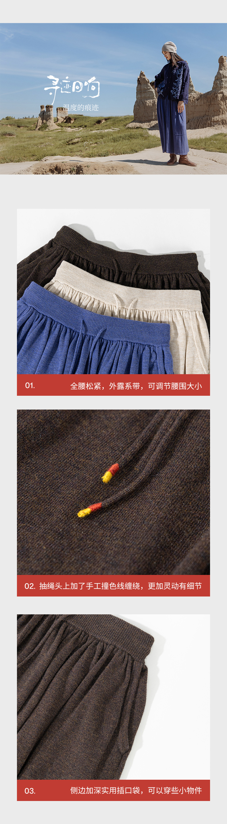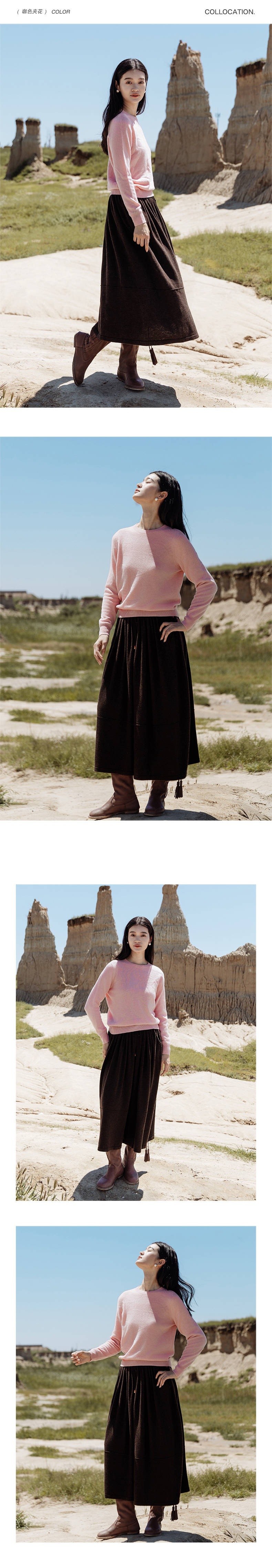 绽放574朵/精纺羊毛花式纱松紧腰抽褶毛织中长款半身裙秋冬新款