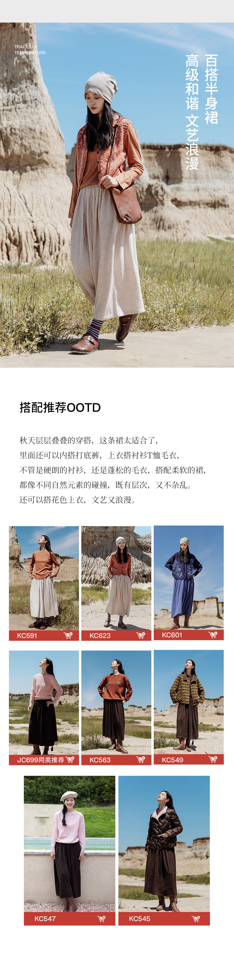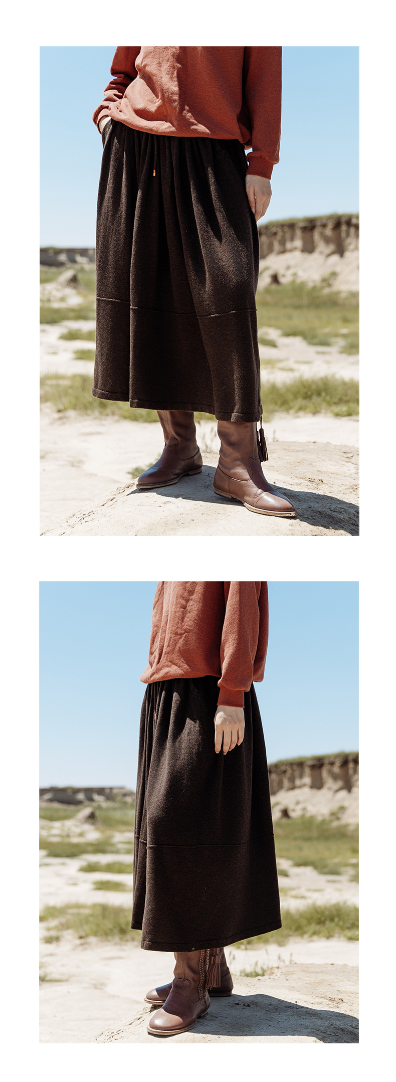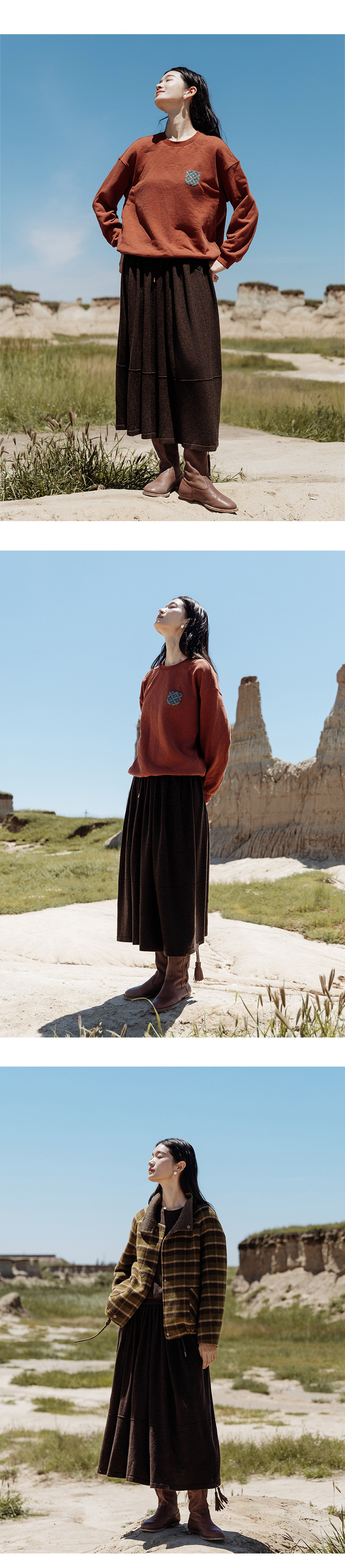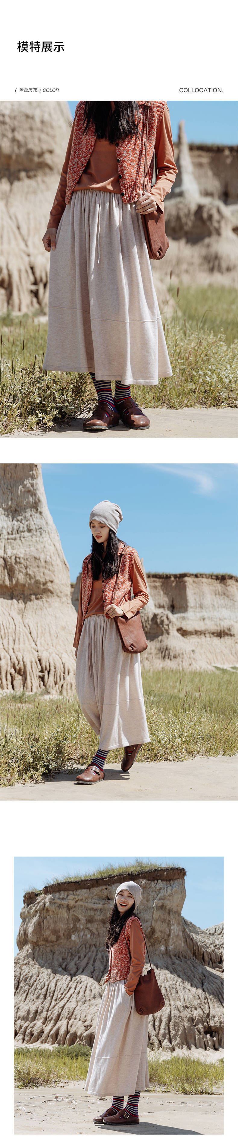 绽放574朵/精纺羊毛花式纱松紧腰抽褶毛织中长款半身裙秋冬新款