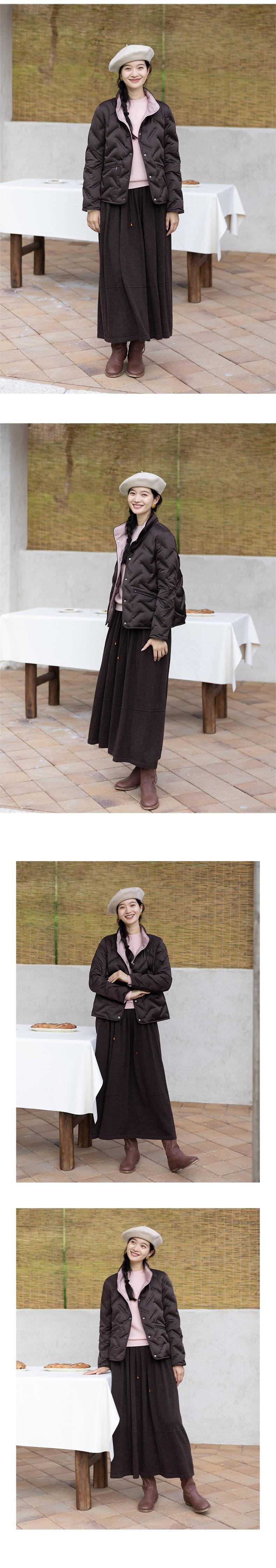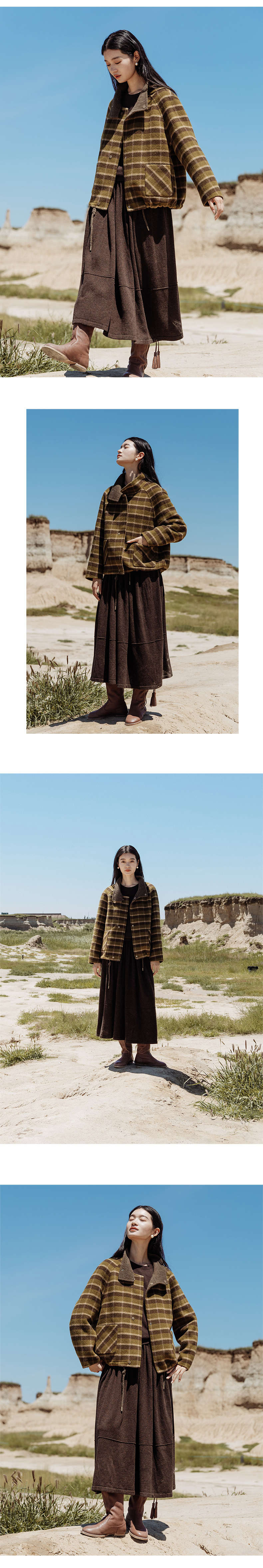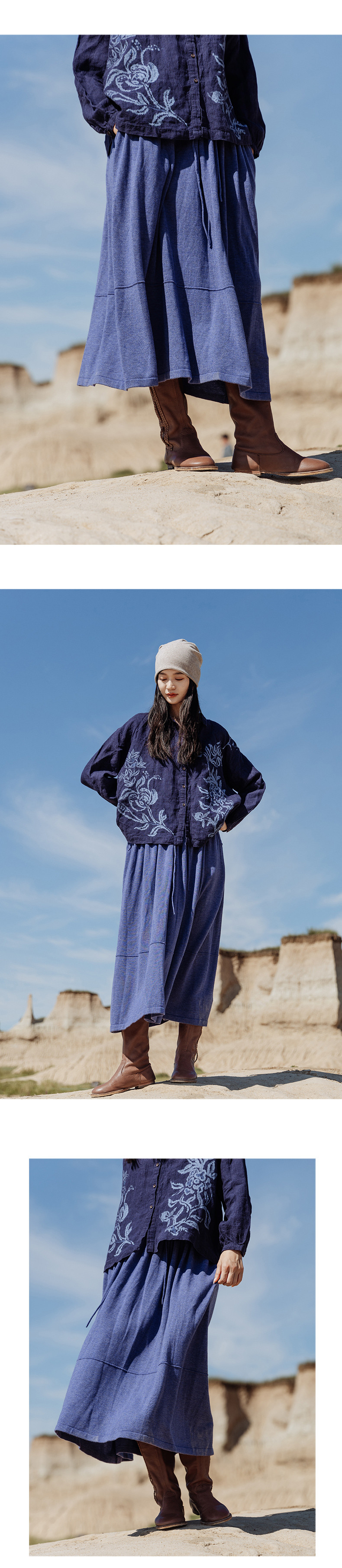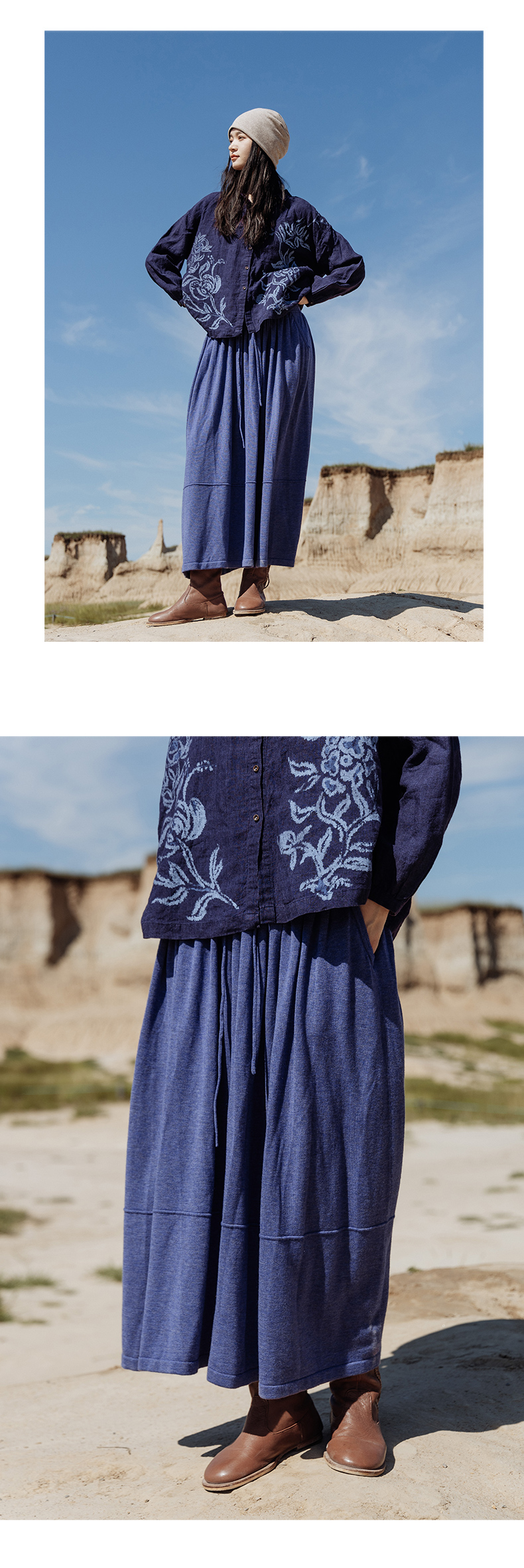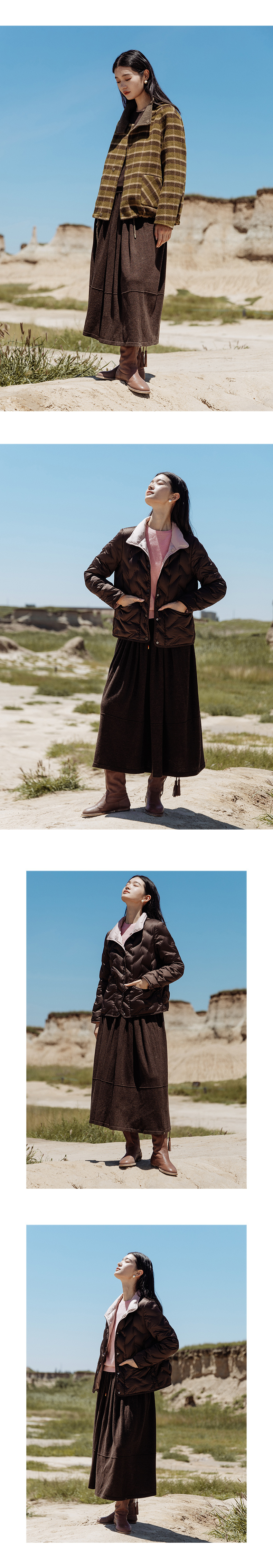 绽放574朵/精纺羊毛花式纱松紧腰抽褶毛织中长款半身裙秋冬新款