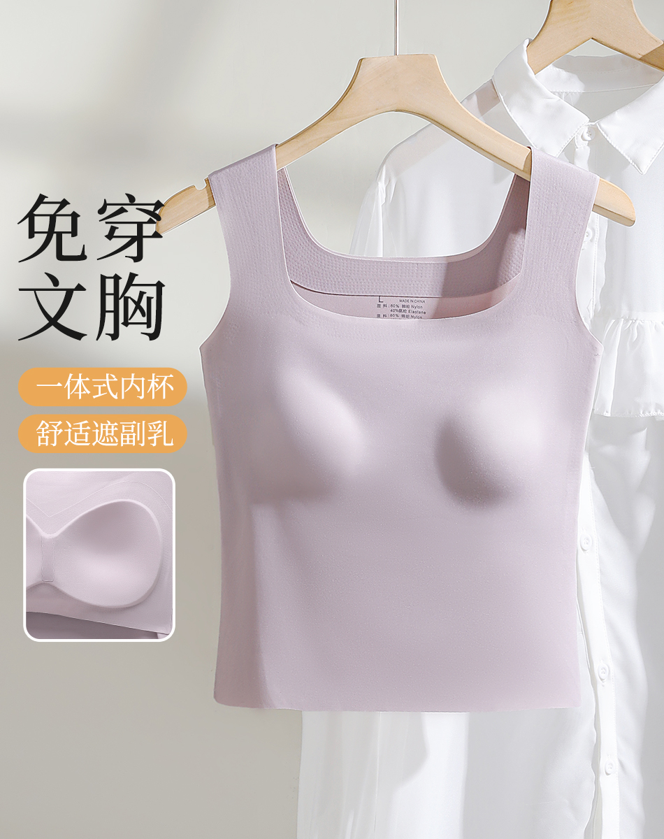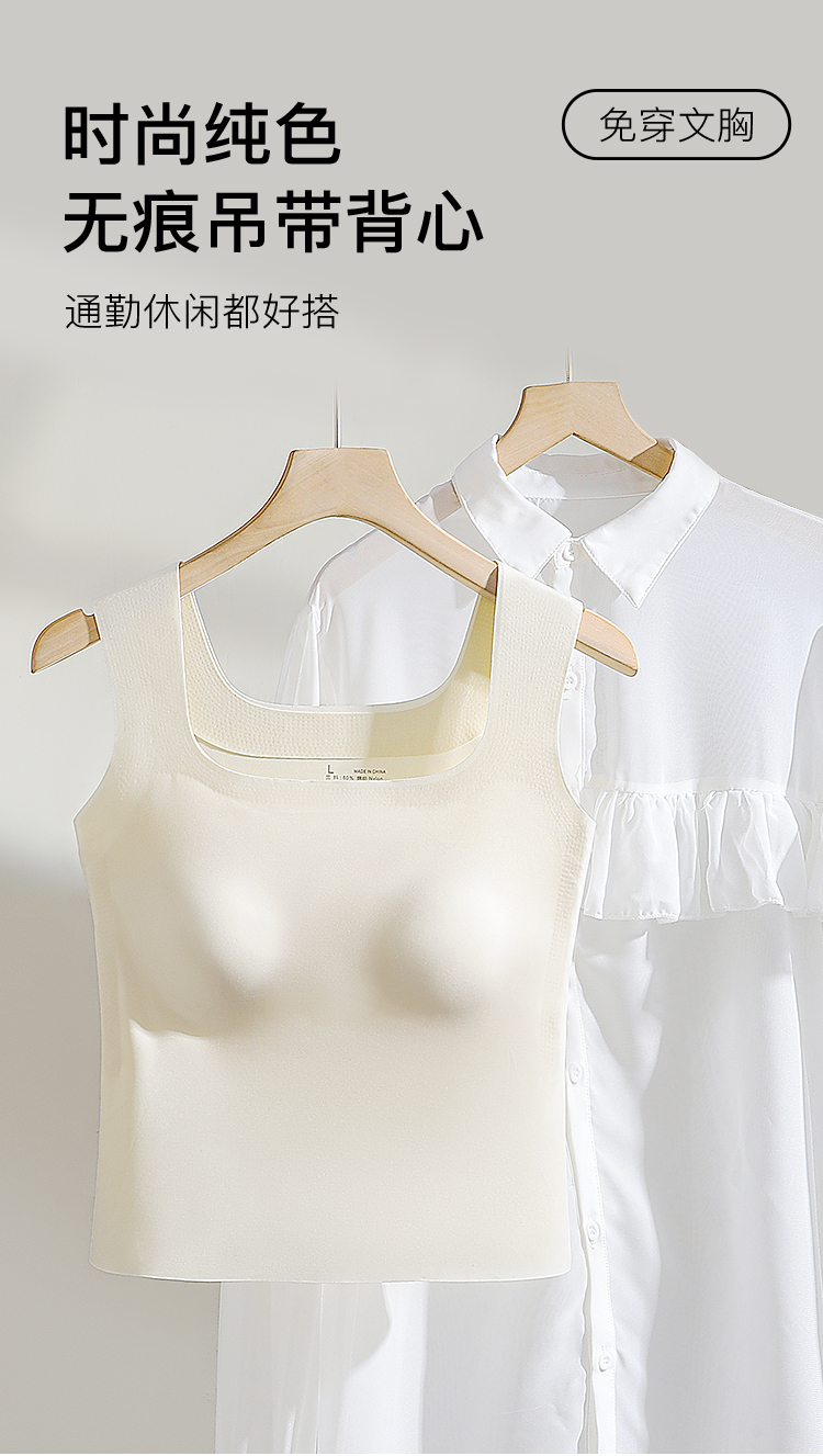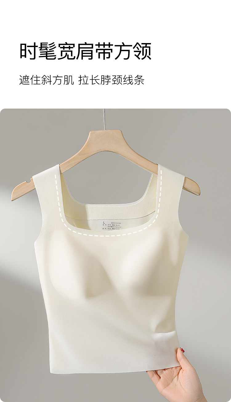 【免穿文胸】春夏时尚方领女士吊带打底背心女带胸垫内搭修身显瘦W-8881背心