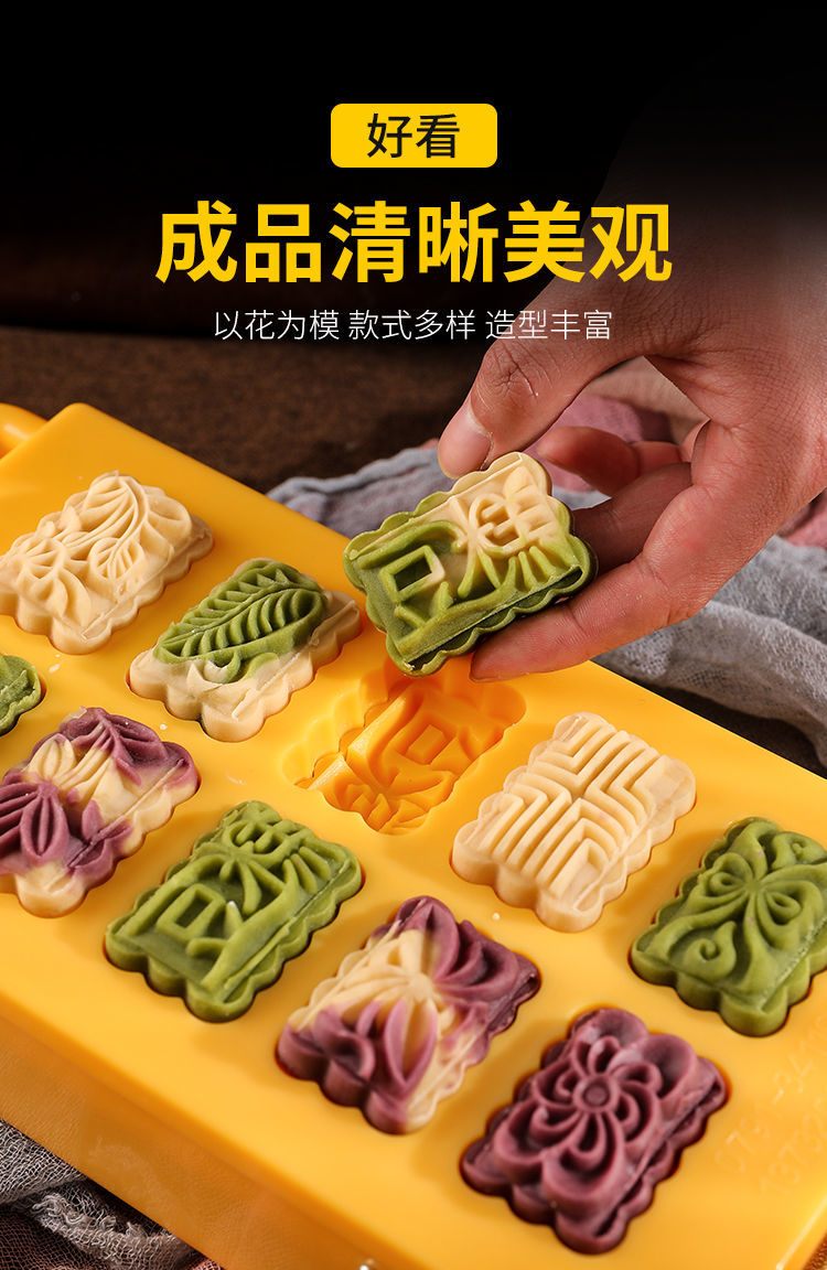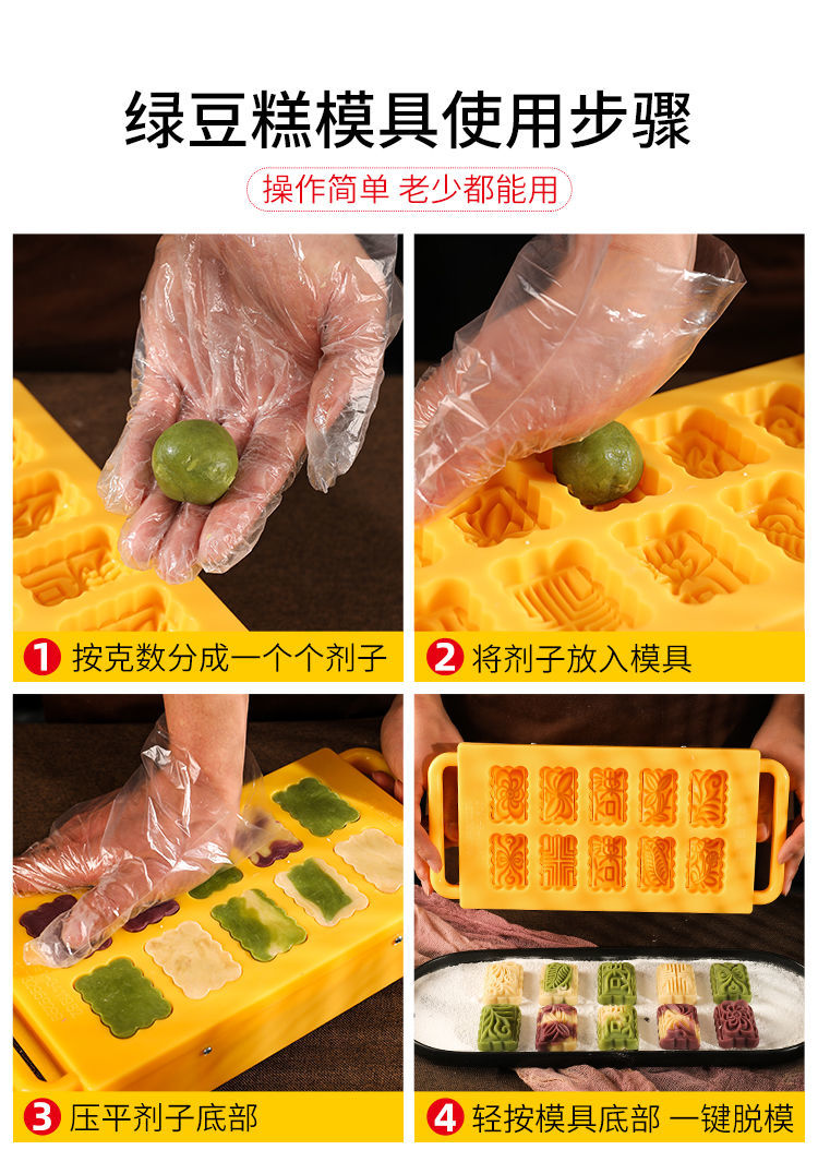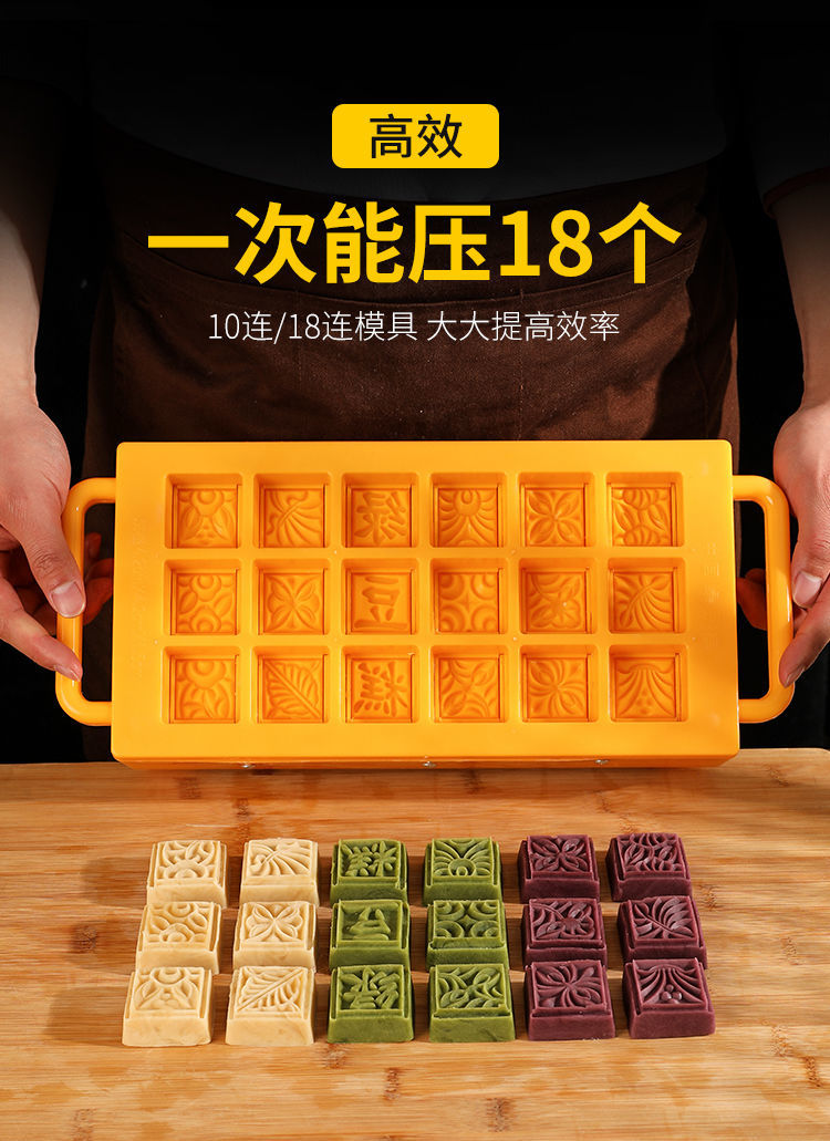 18格绿豆糕模具自制不粘冰糕点心手压式方形烘焙月饼糕点模具
