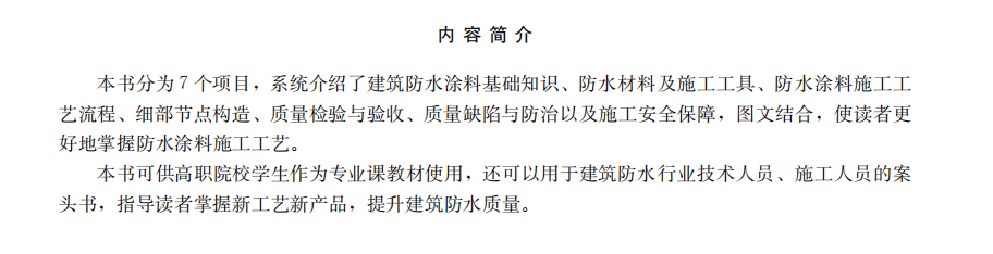 防水涂料施工工艺图解/吴承霞,熊卫锋,王巍编 著:中国建材工业出版社,2024 ISBN 9787516034361