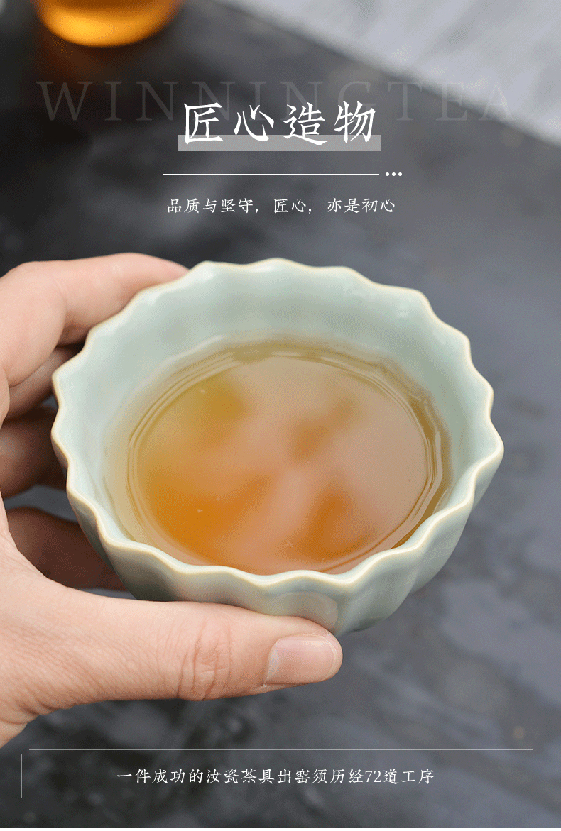 问鼎汝瓷鼎峰系列天青老款菱式盅