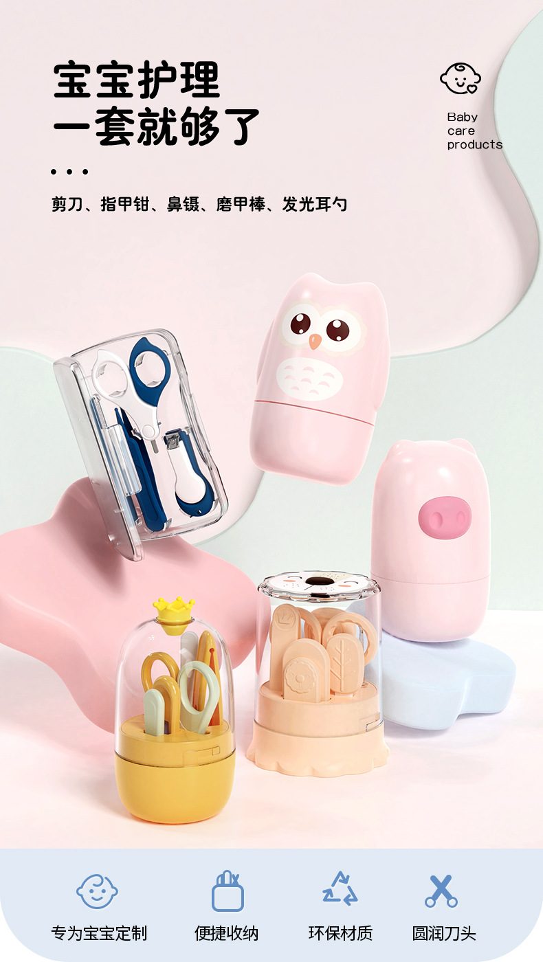 【萌趣小熊指甲剪4件套】卡通婴儿指甲剪套装新生儿专用宝宝剪刀安全指甲钳神器儿童用品