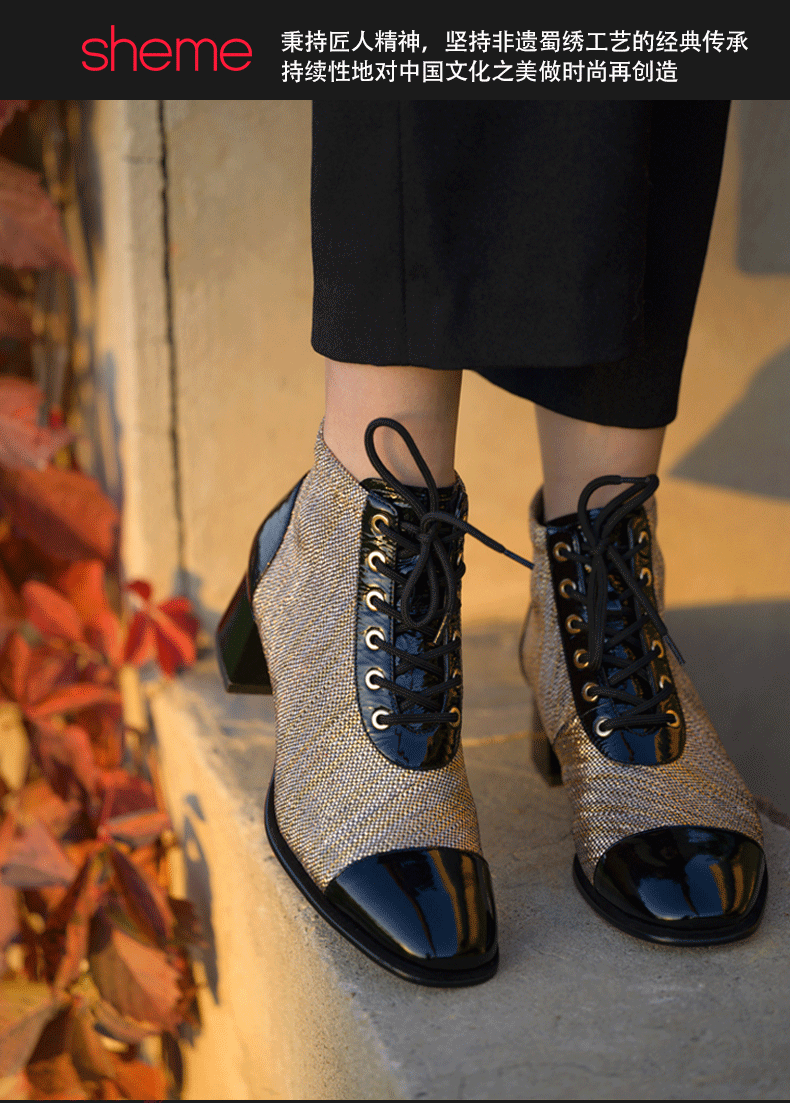 sheme 2021秋冬袋鼠漆皮粗跟短靴