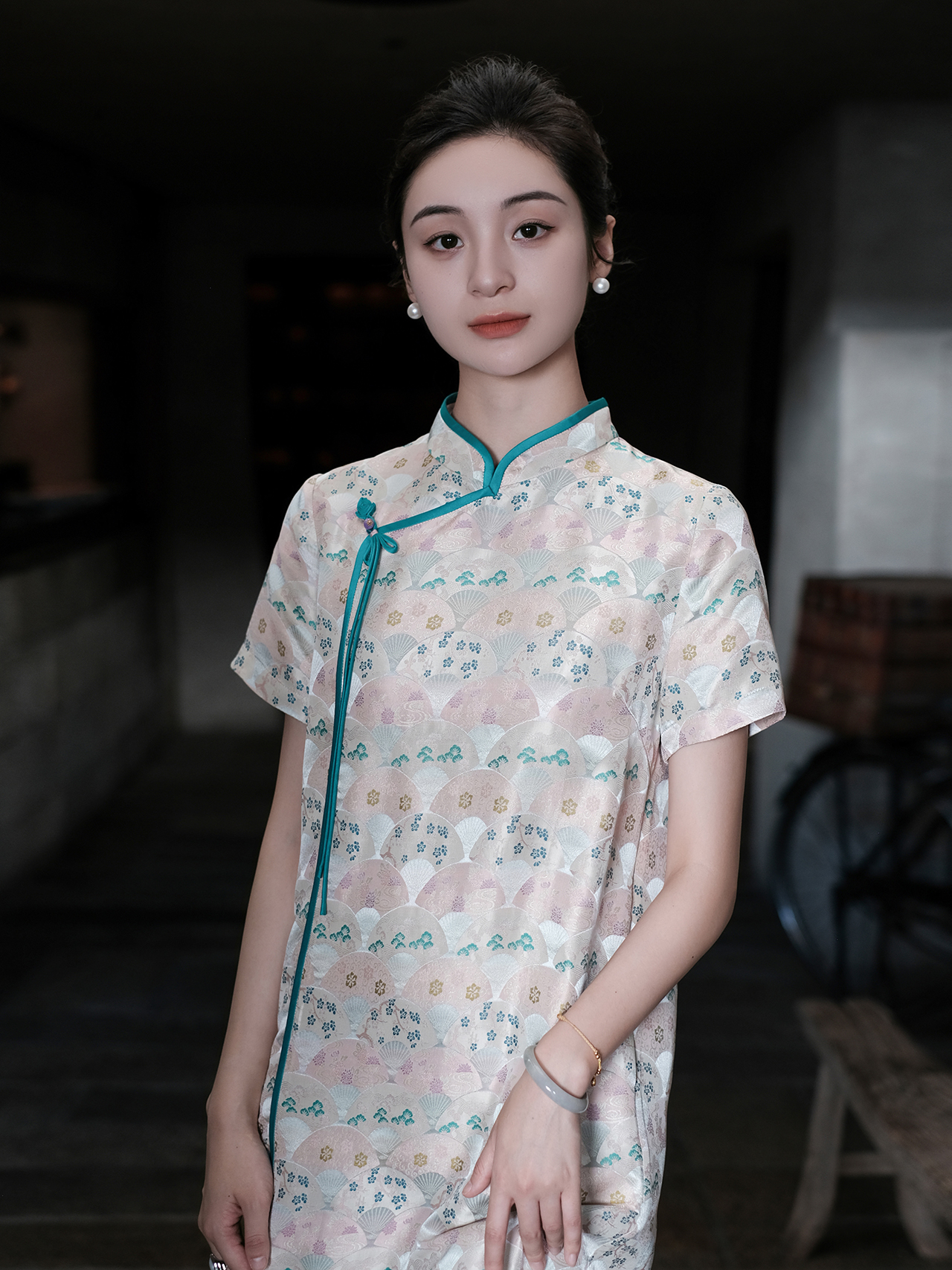 盛唐婧 |烂漫樱花真丝宋锦新中式连衣裙