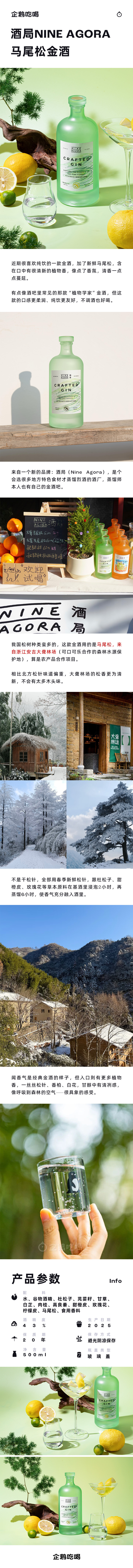 企鹅市集|NINE AGORA酒局 马尾松金酒500ml 浙江安吉大聋林场合作款 清新植物香