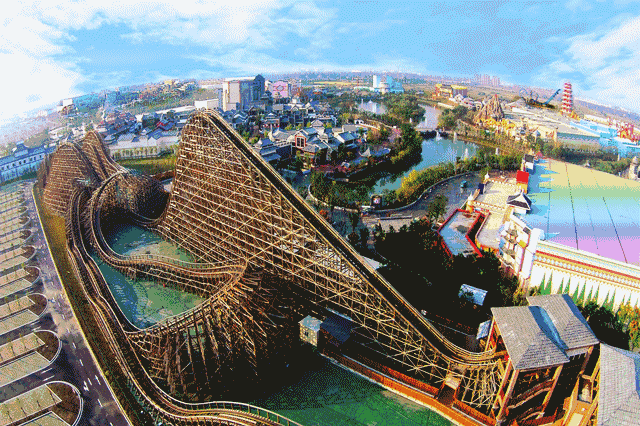 过山车的鼻祖,除了基础部位外。全由木头拼接而成。这条木质巨龙,极速上升下降,经历各种扭曲和转弯轨道,体验速度与激情!!