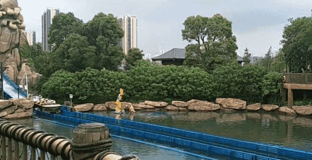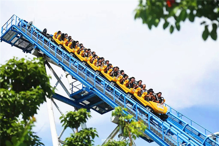 乘船出发缓缓达到最高峰,然后从高处滑下,直冲池底,体验高速冲浪、失重的各种刺激感受,欣赏漫天浪花的水帘奇景!