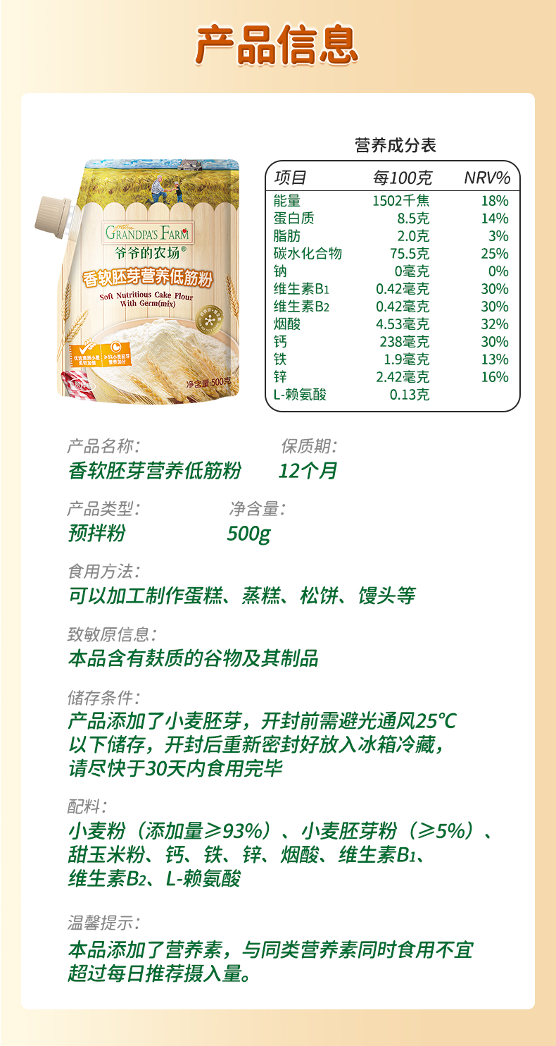 爷爷的农场香软胚芽营养低筋粉500g