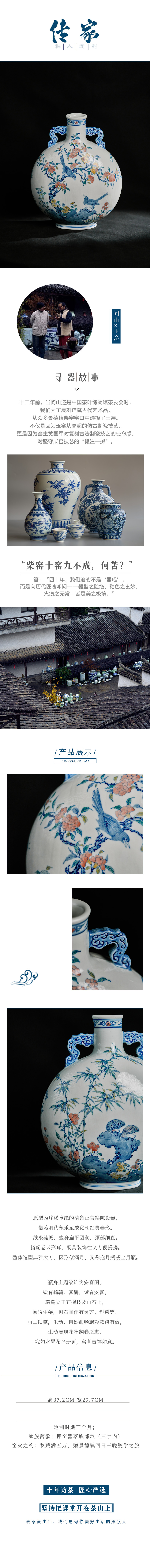 守艺 · 青花斗彩安喜图纹抱月瓶 柴窑 高37.2cm 宽29.7cm