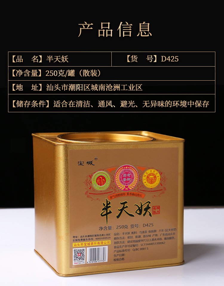 【新品上市】宝城 D405单丛鸭屎香茶叶250克罐装
