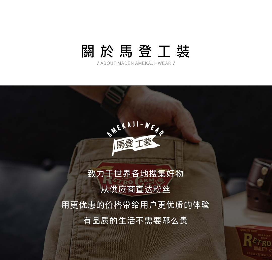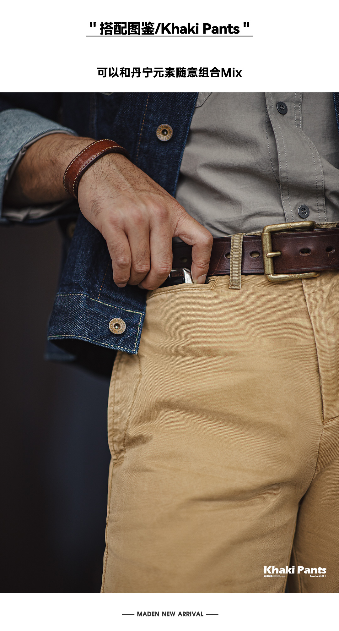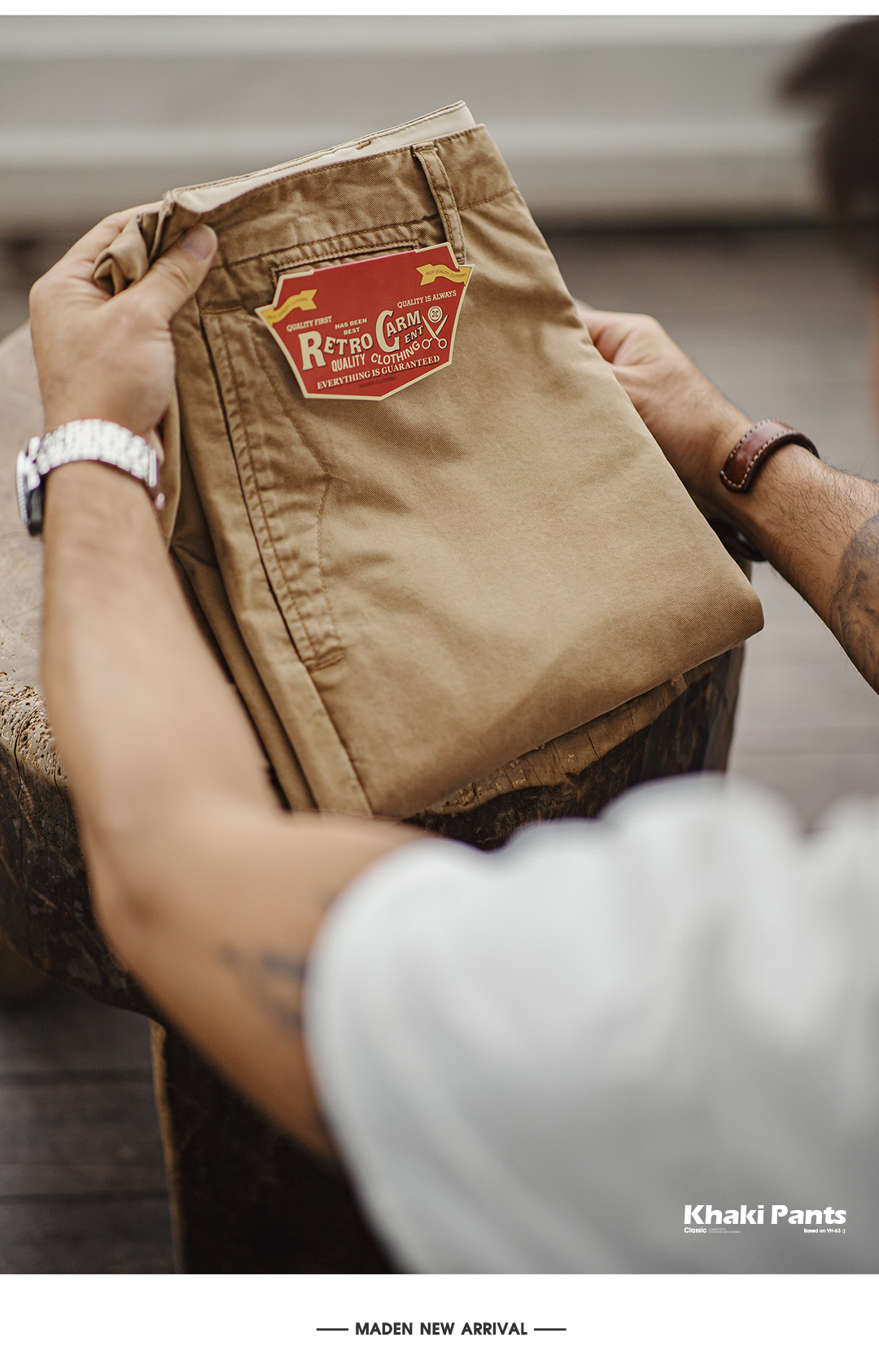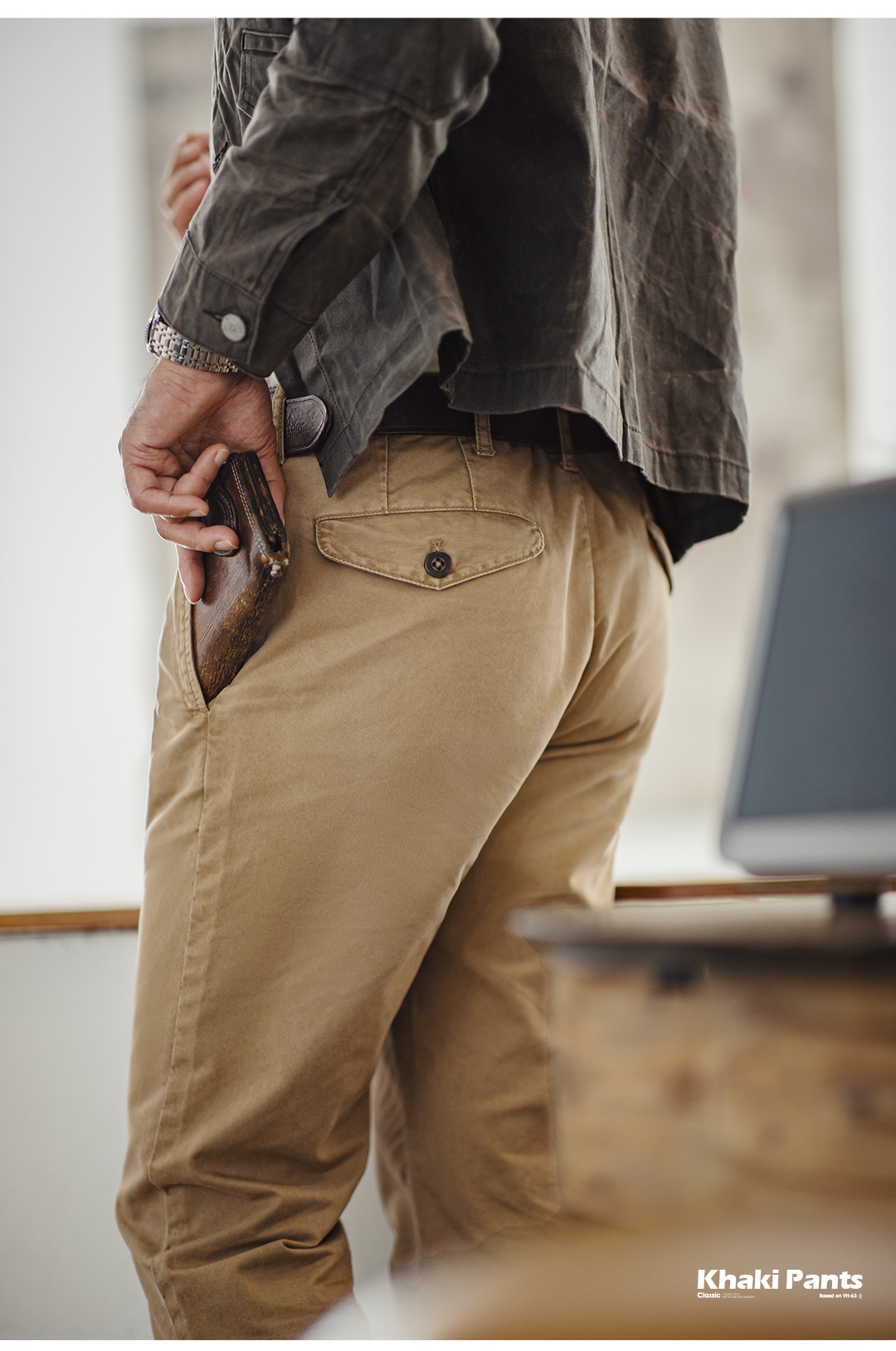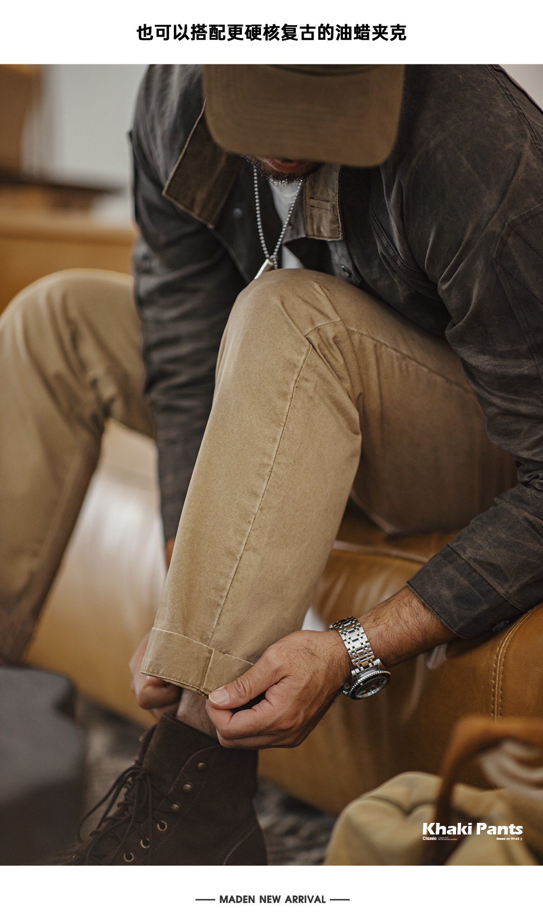 工装优选 美式复古重磅卡其休闲裤阿美咔叽斜纹纯棉显瘦直筒裤男秋