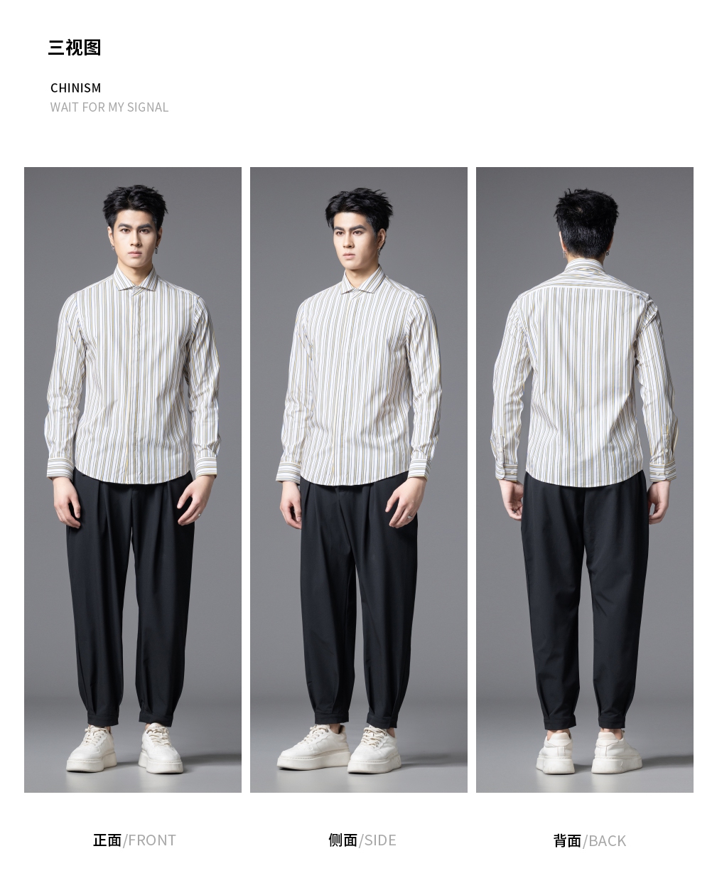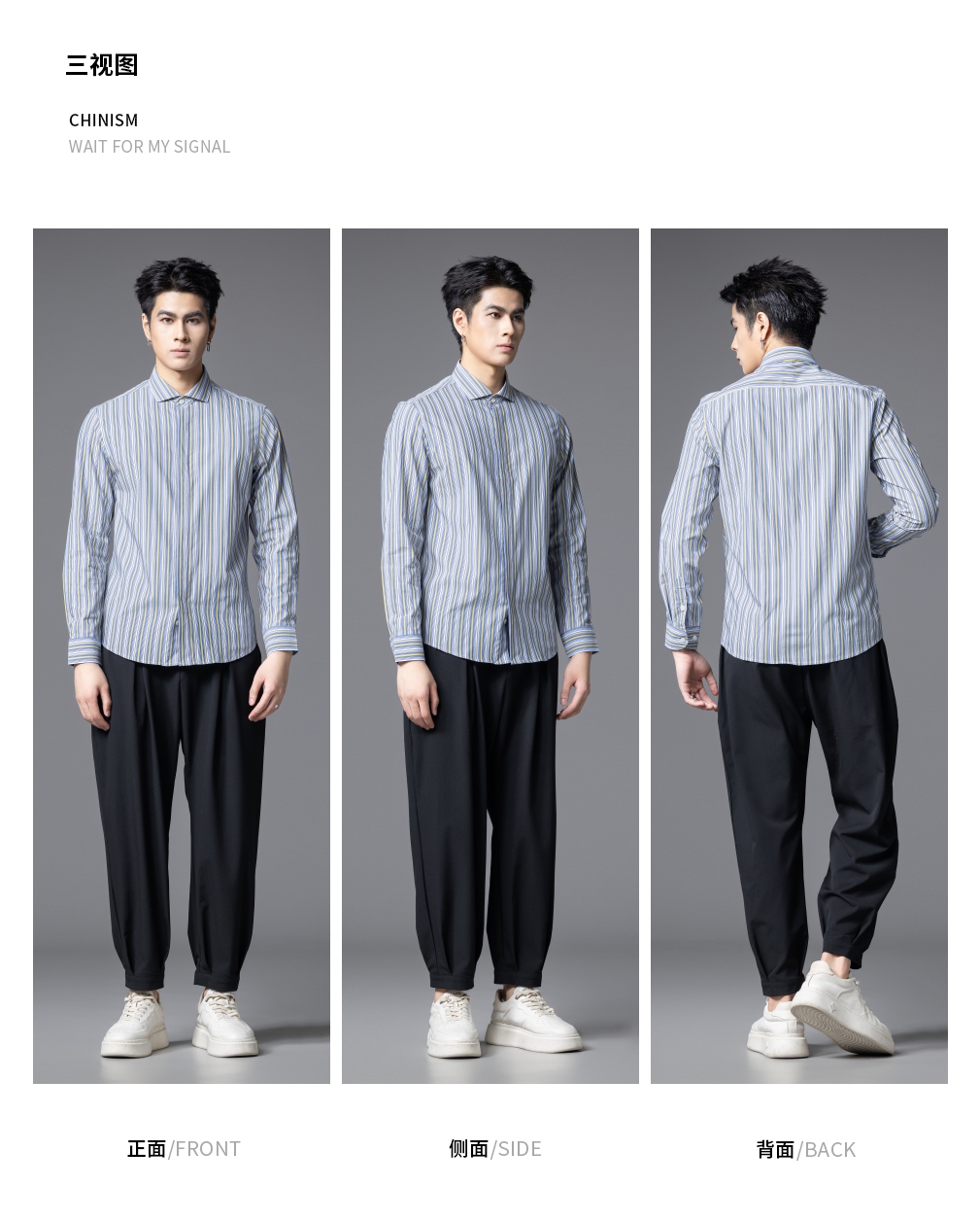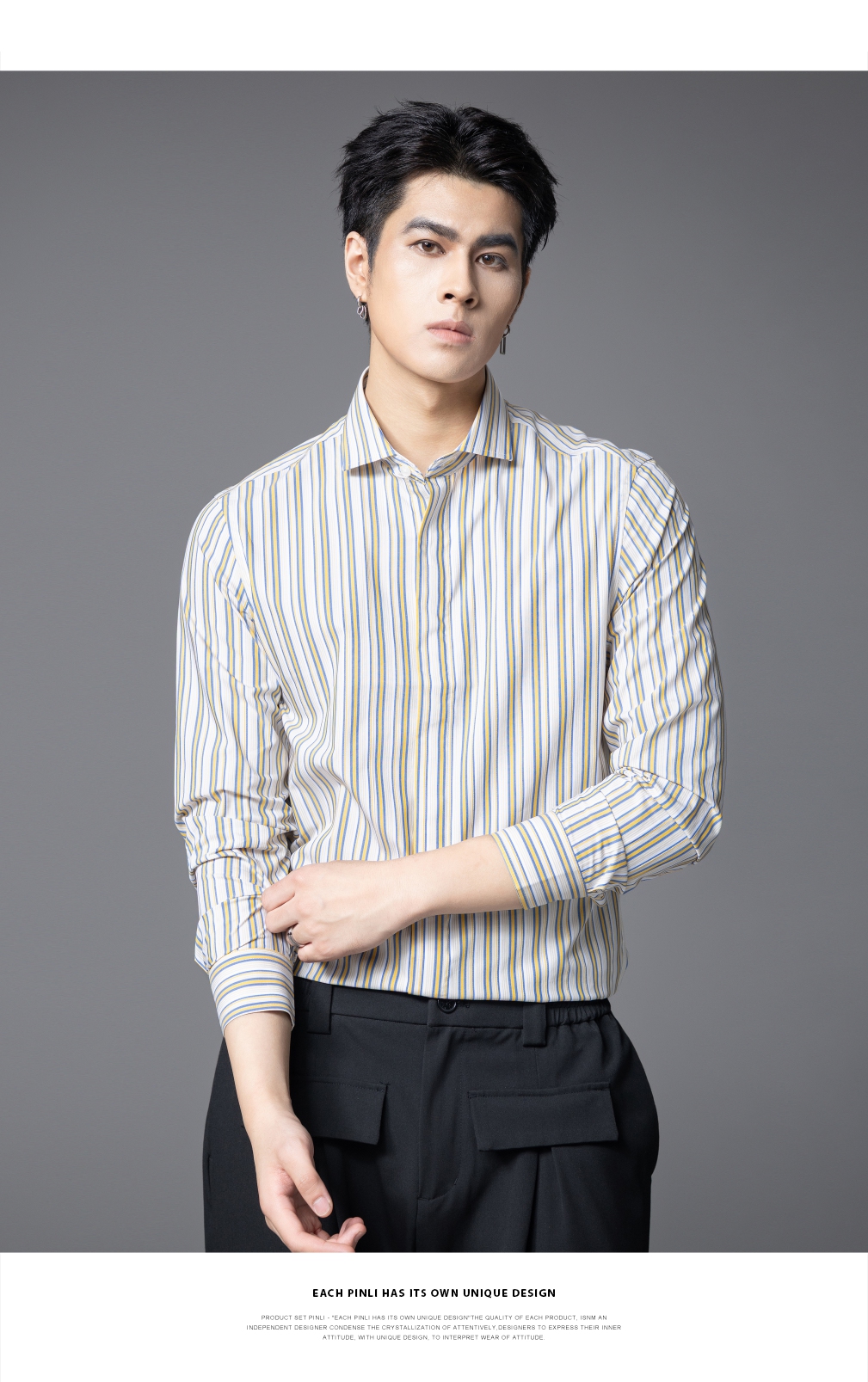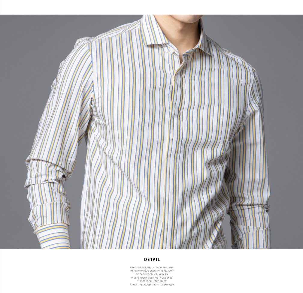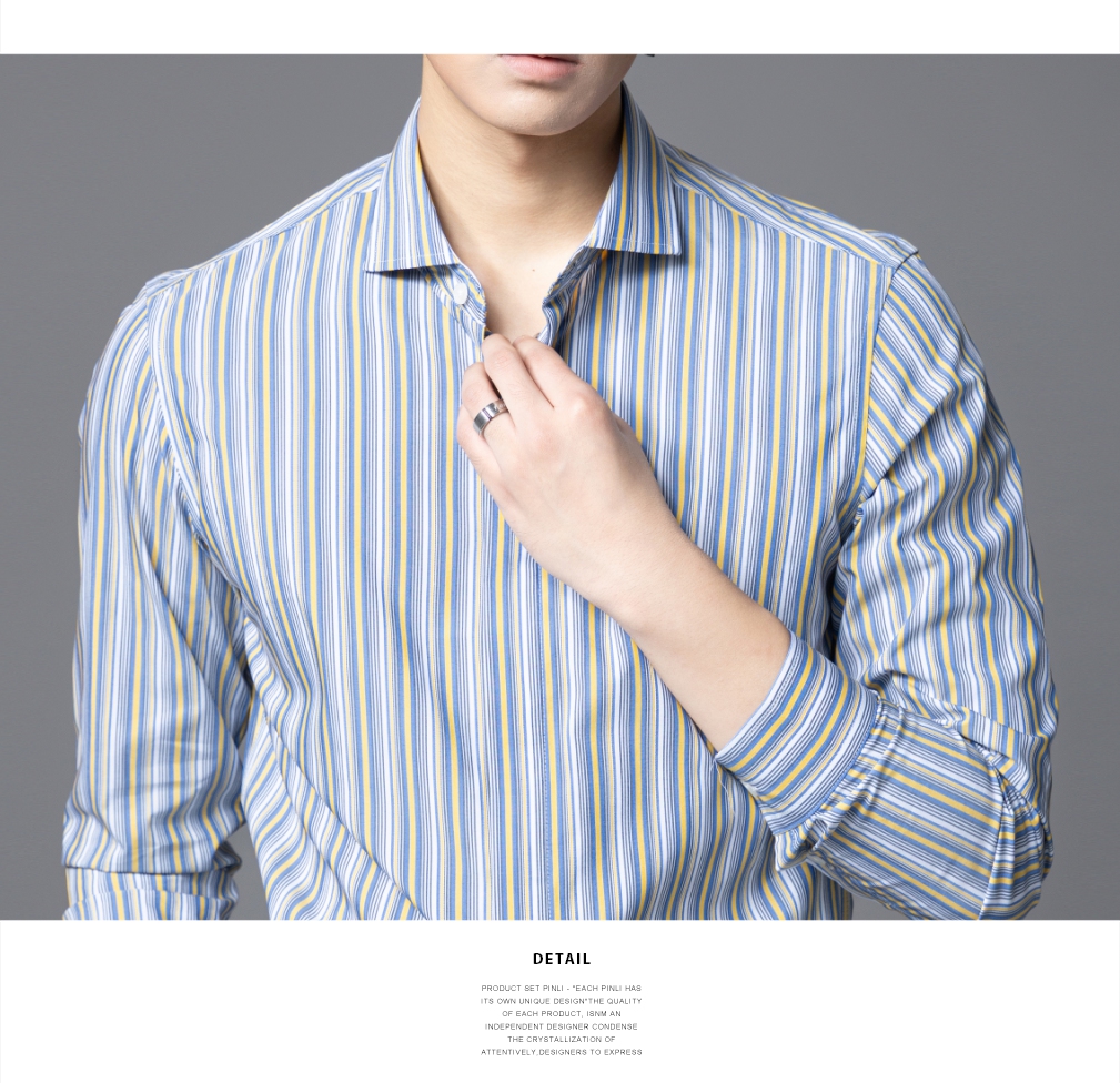 PINLI品立2025秋季新款男条纹方领打底长袖衬衫衬衣潮GD253113054