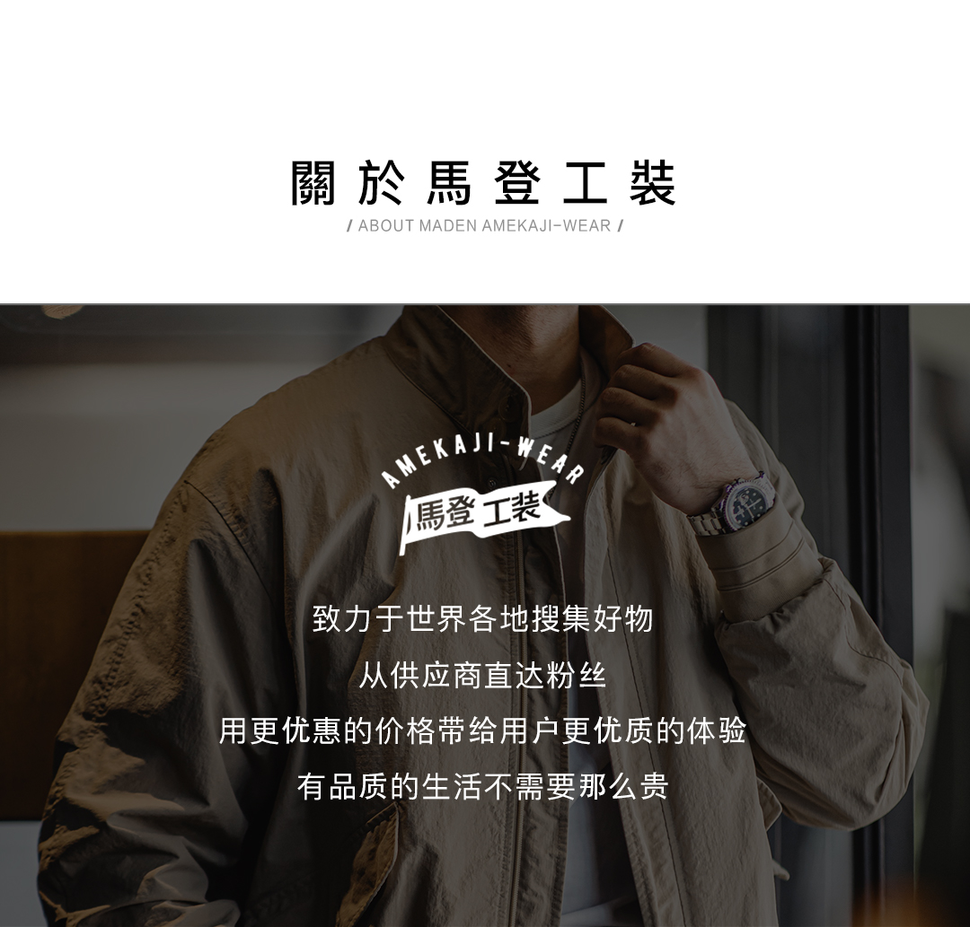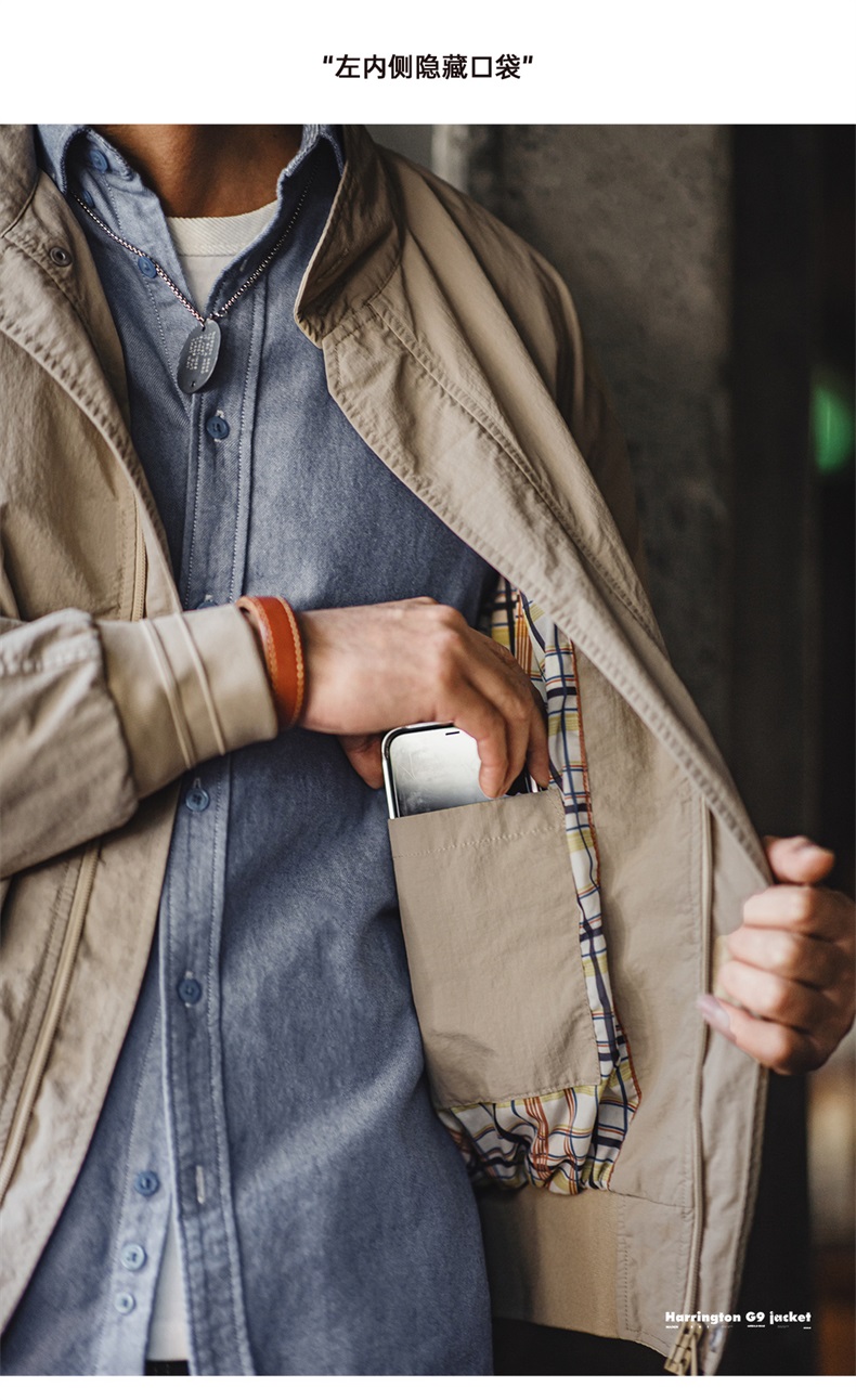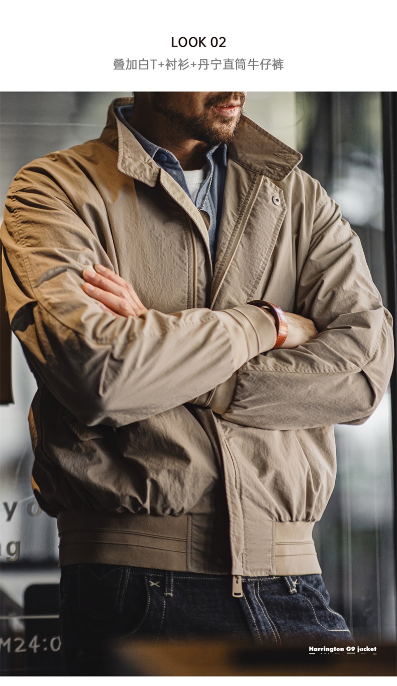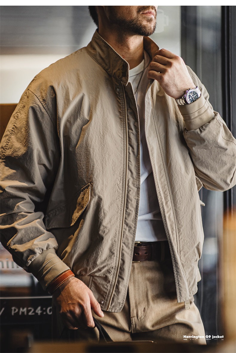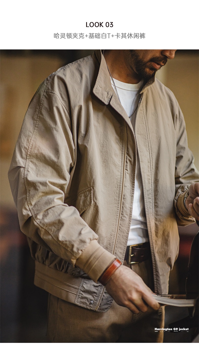 工装优选美式复古哈灵顿G9立领夹克阿美咔叽休闲经典卡其外套男春