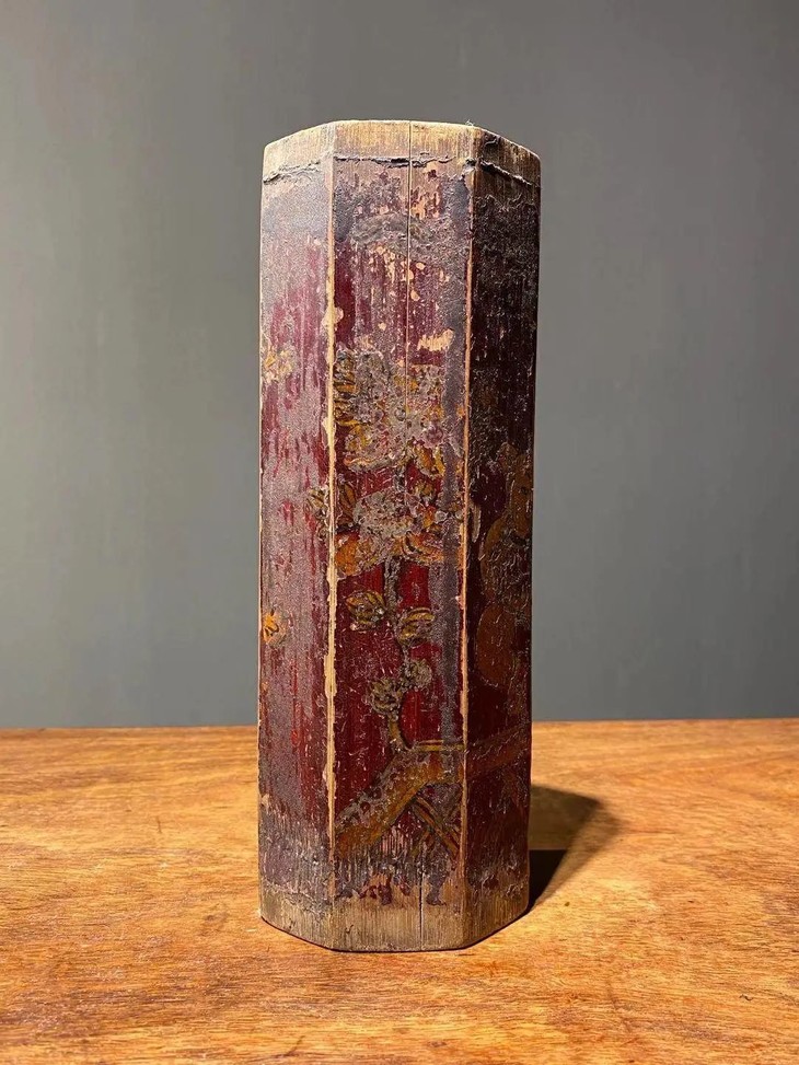 此组八方彩绘签筒与签条除表面之细微磨痕外,签筒一道裂痕,漆绘部份剥落外基本保存完好,表面包浆皮壳温润细腻。