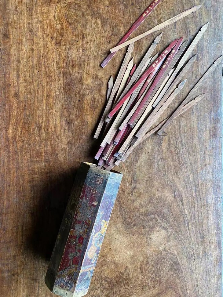 道教八方漆绘竹雕签筒与签条