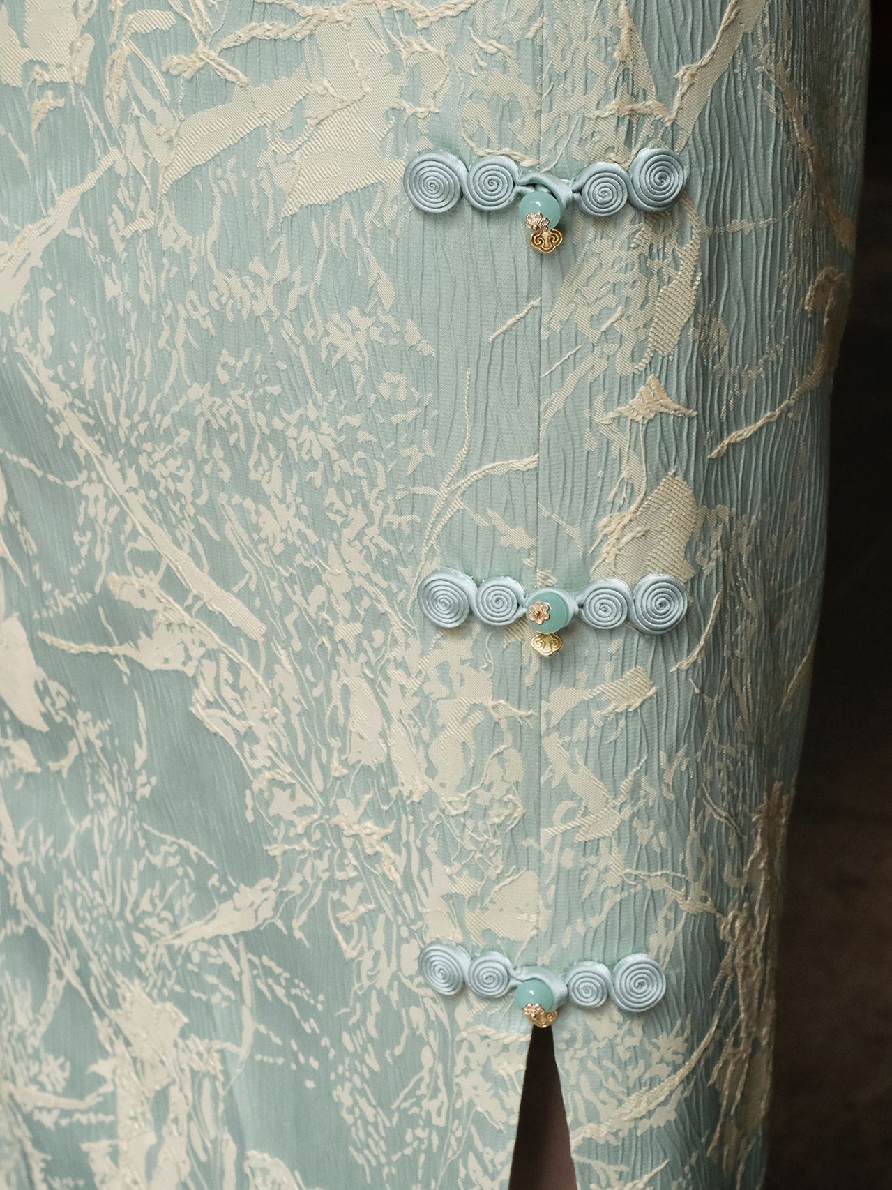 盛唐牡丹 |孔雀蓝双面穿菊花纹提花真丝外套