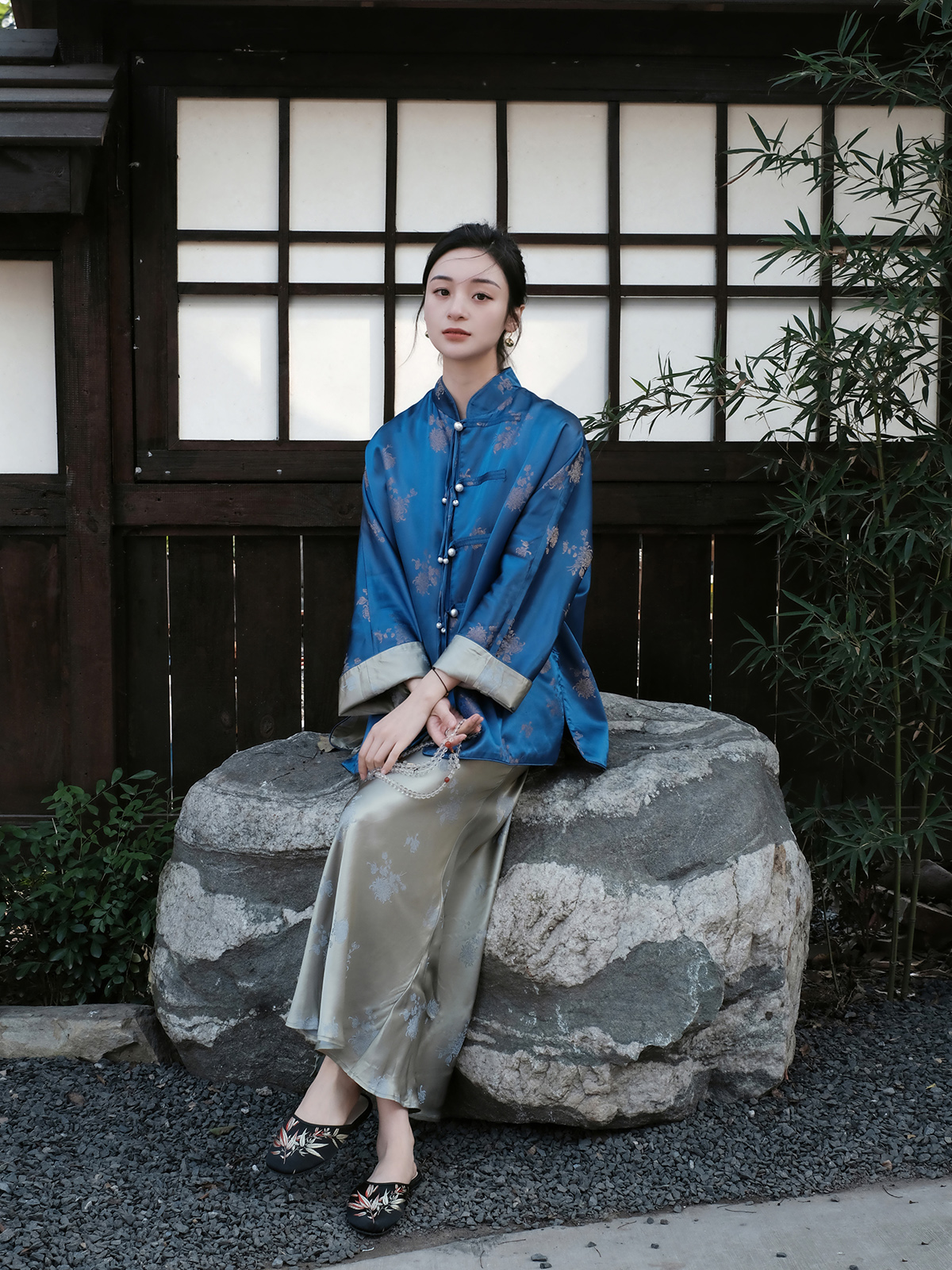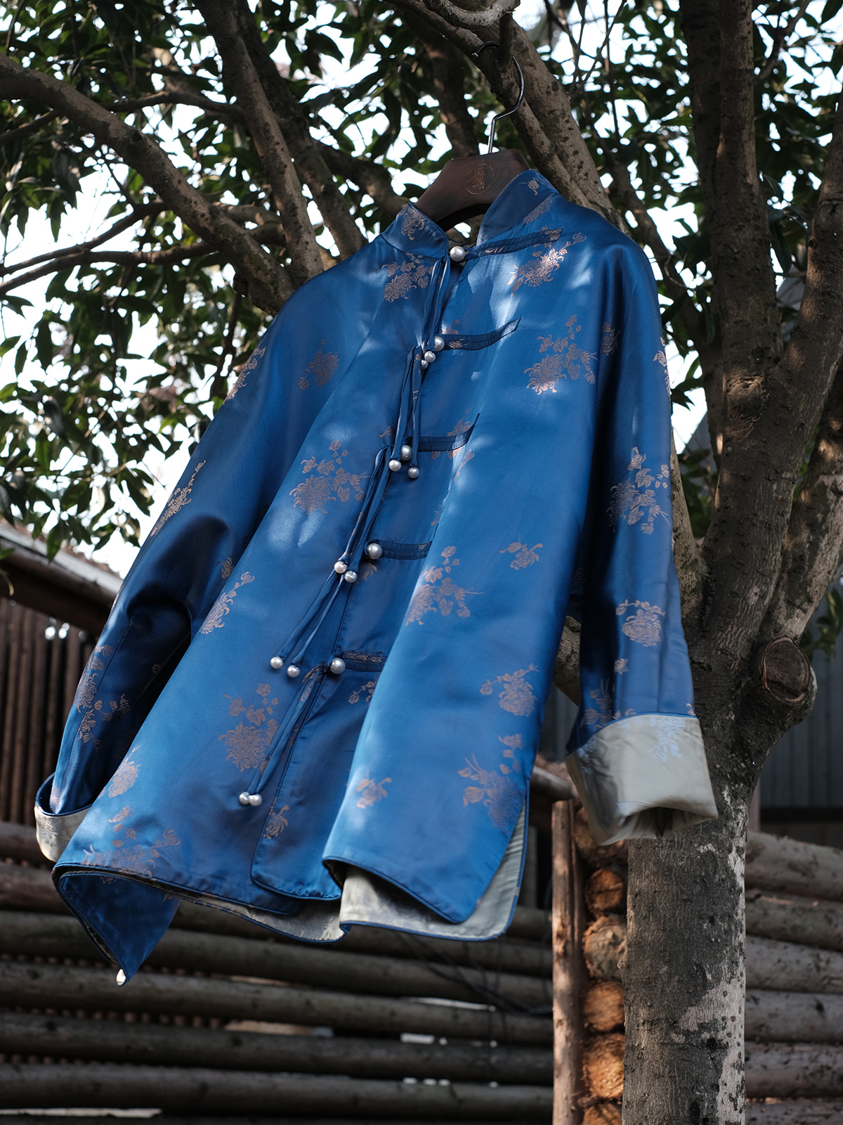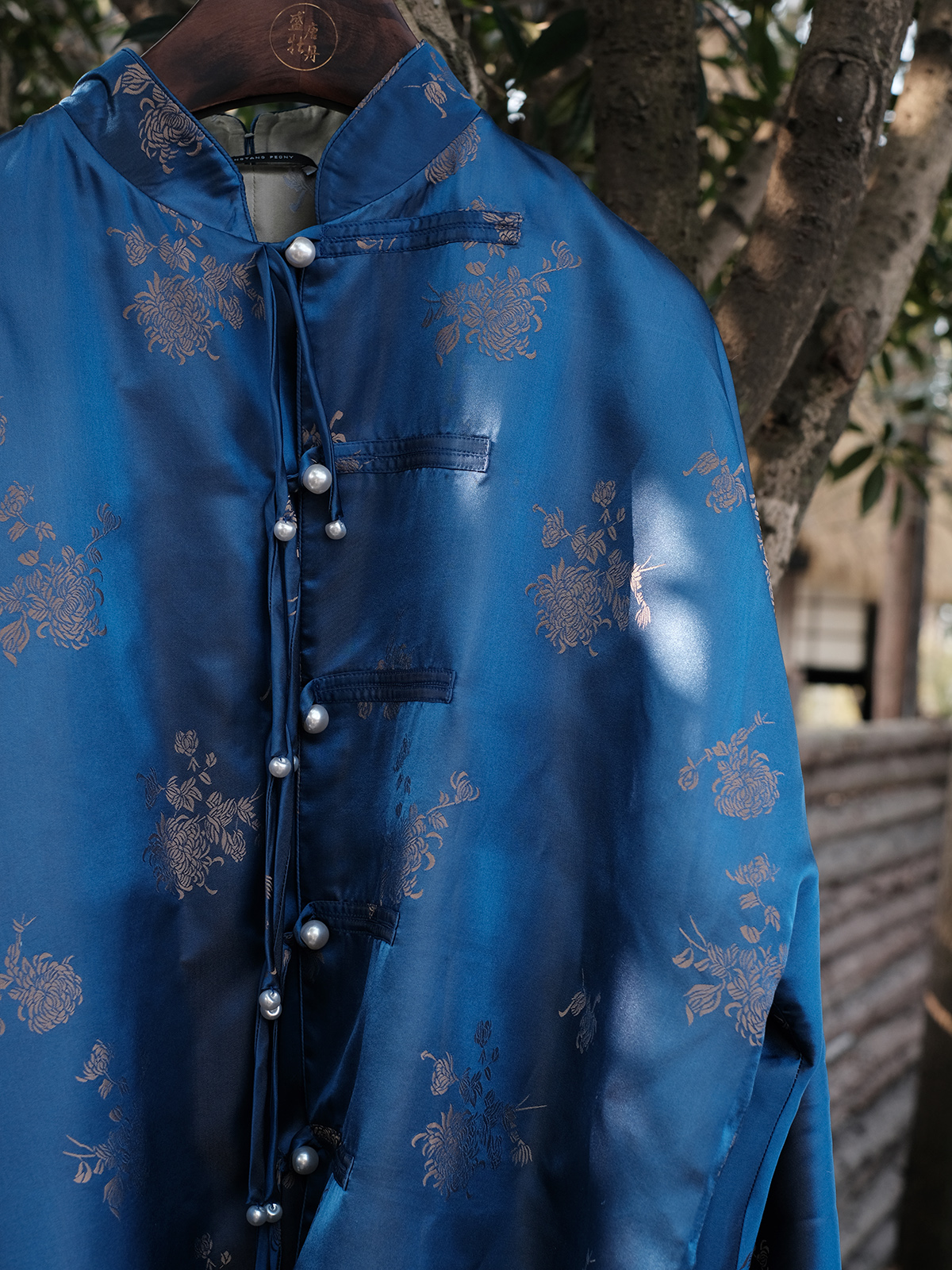 盛唐牡丹 |孔雀蓝双面穿菊花纹提花真丝外套