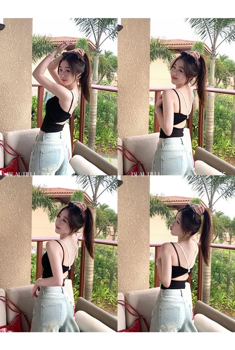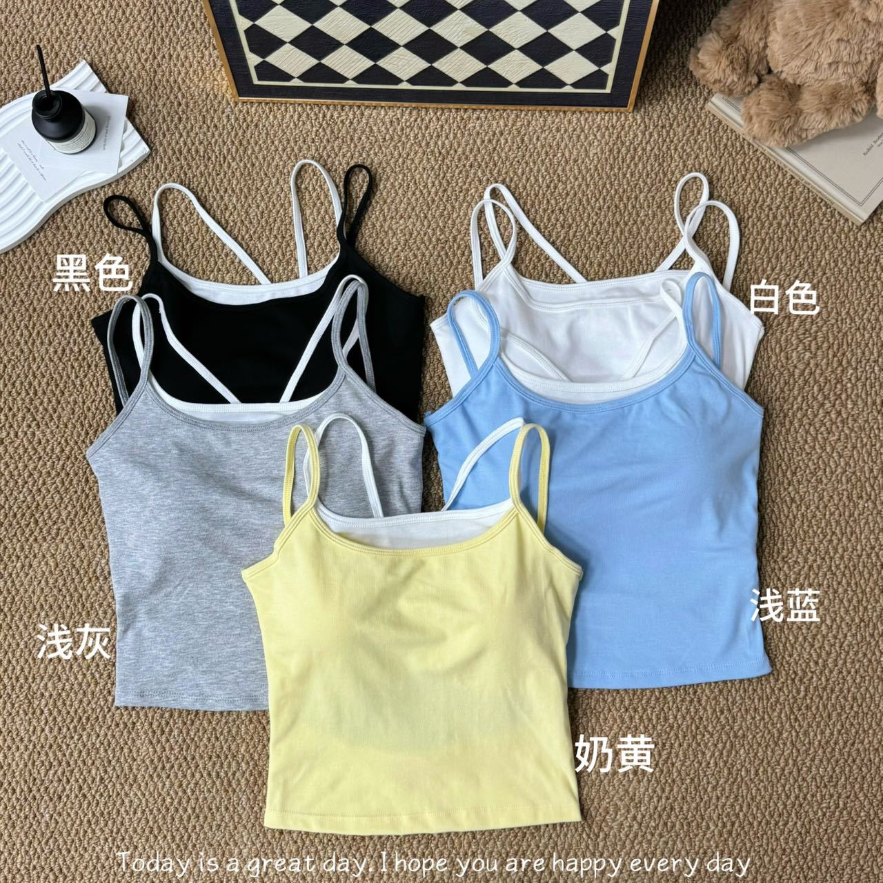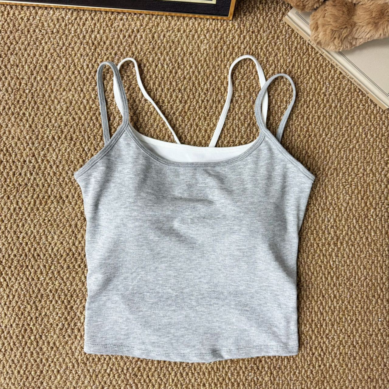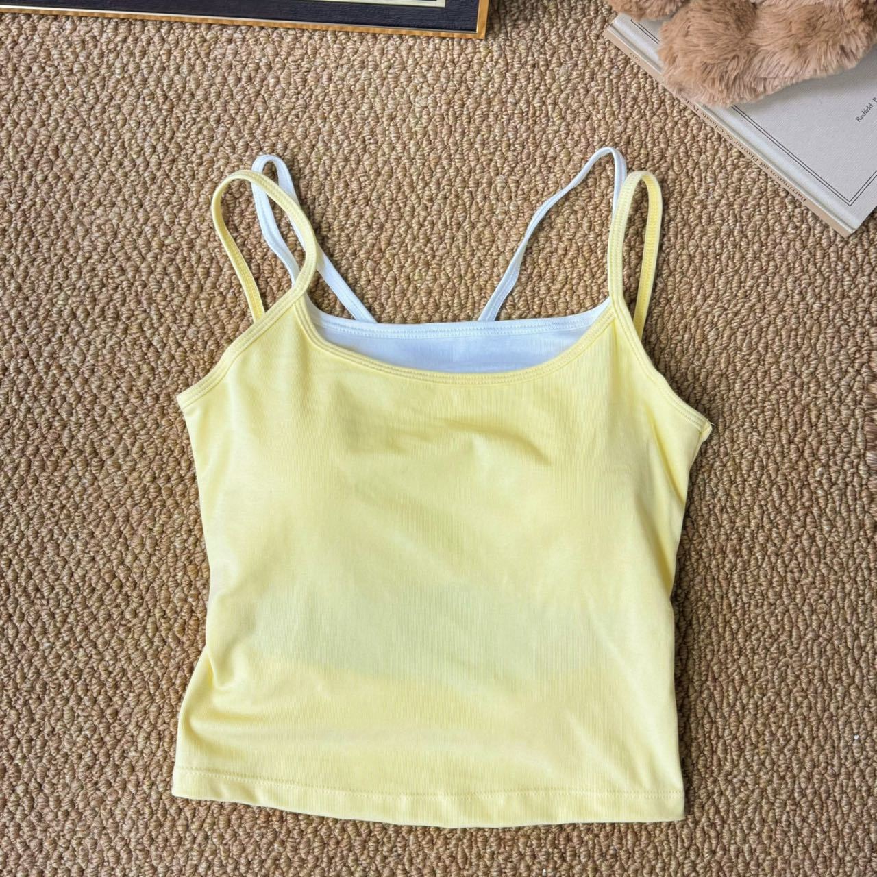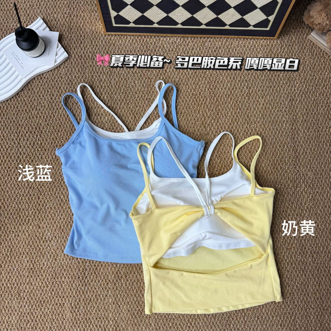 【夏天必备❗️假两件撞色辣妹吊带】撞色系镂空纯欲美背,多巴胺特调,假两件露背小吊带,新款外穿修身显瘦内搭短款上衣L