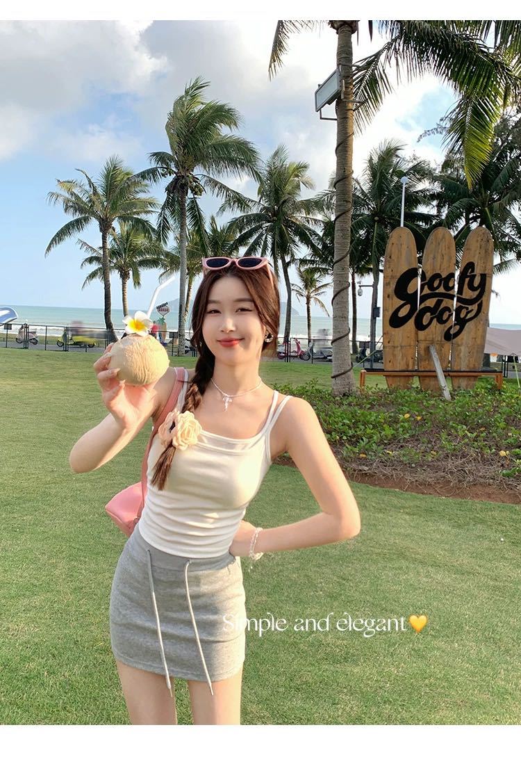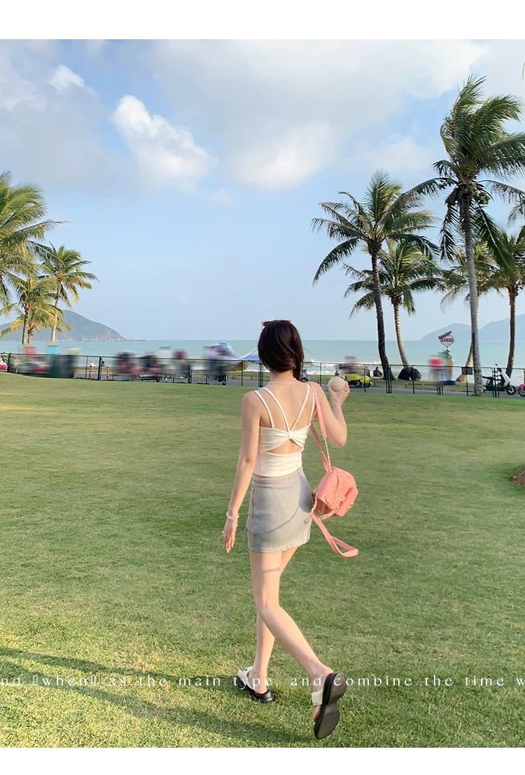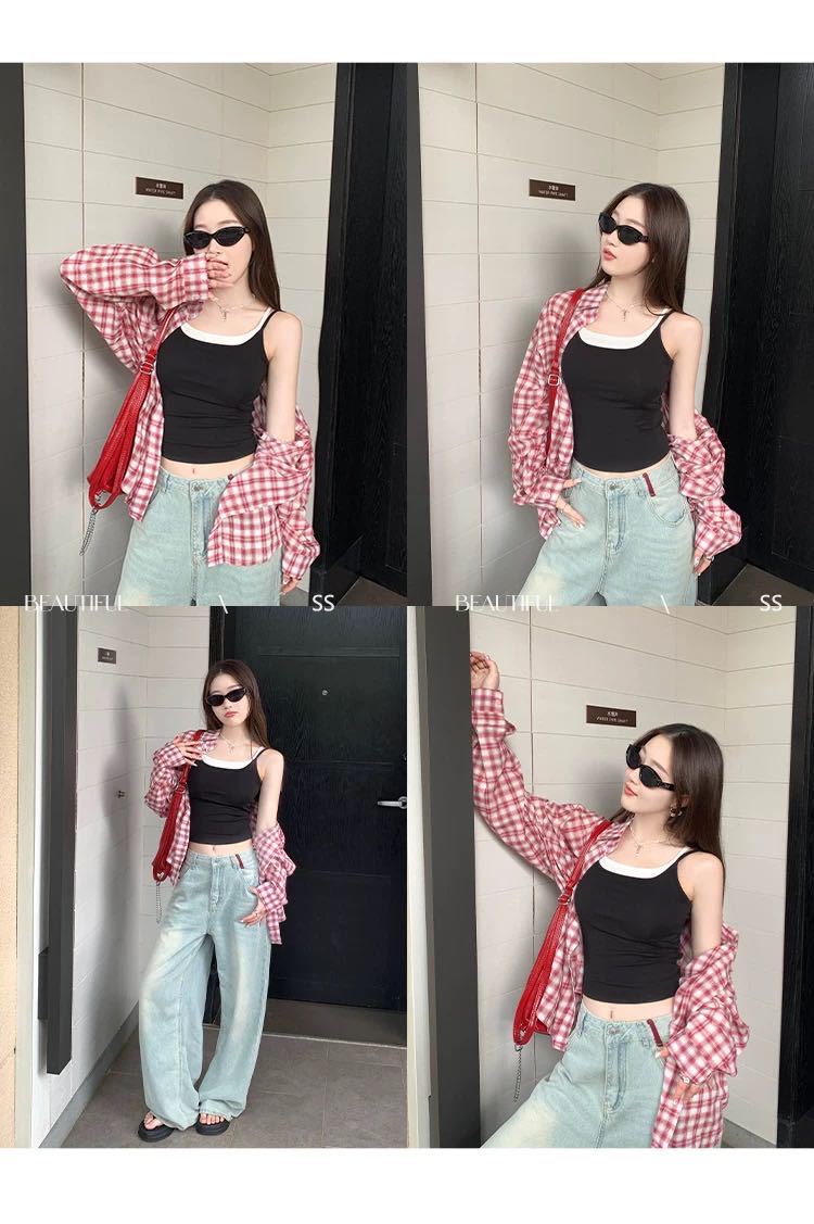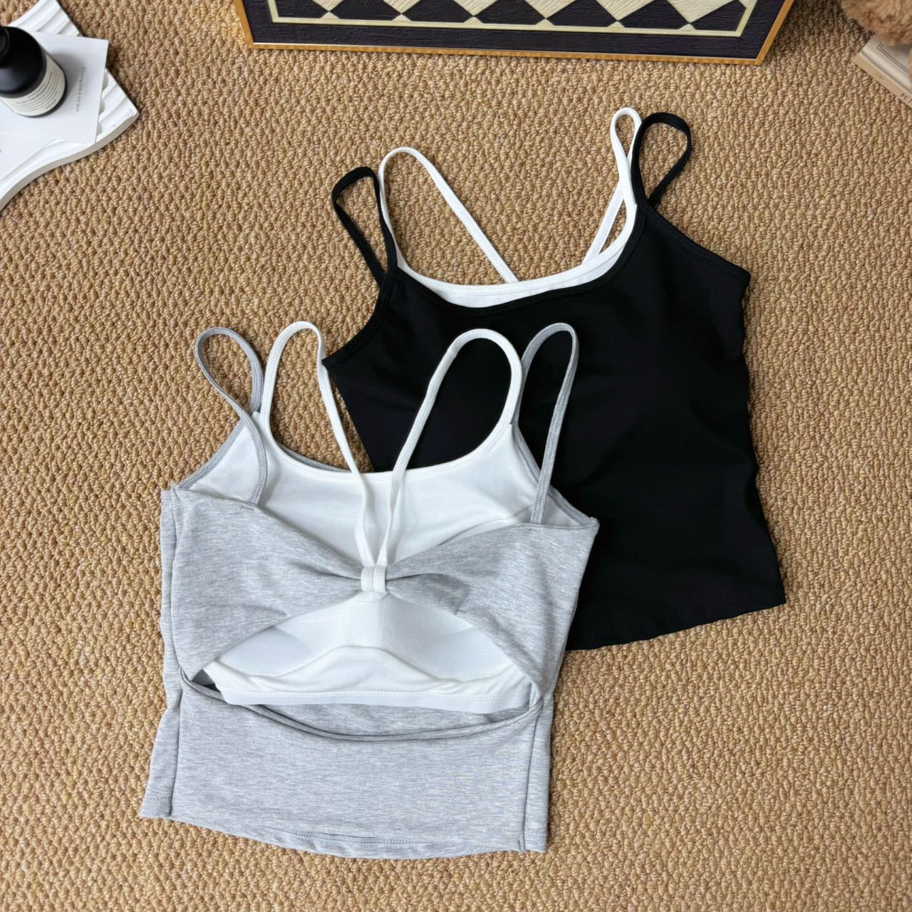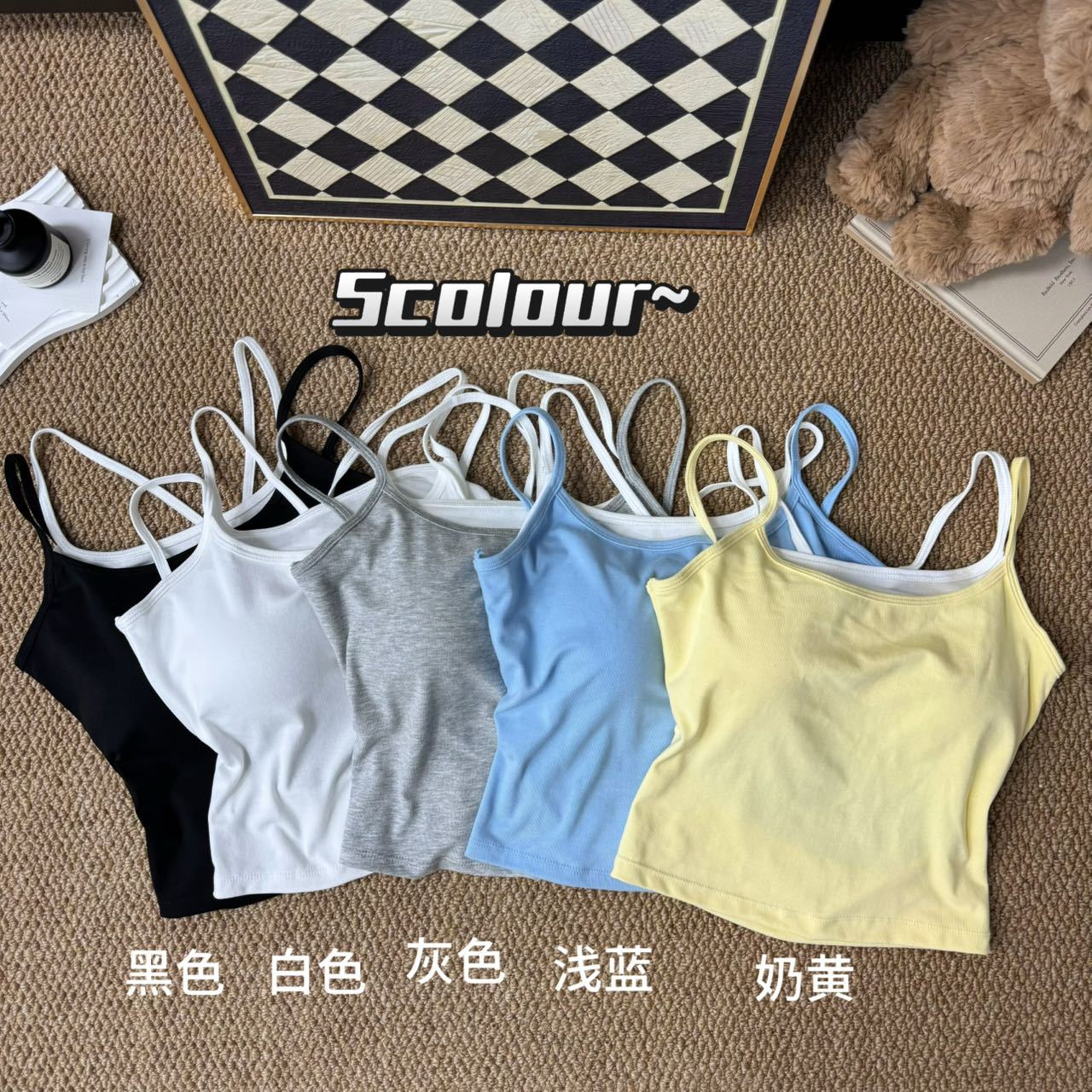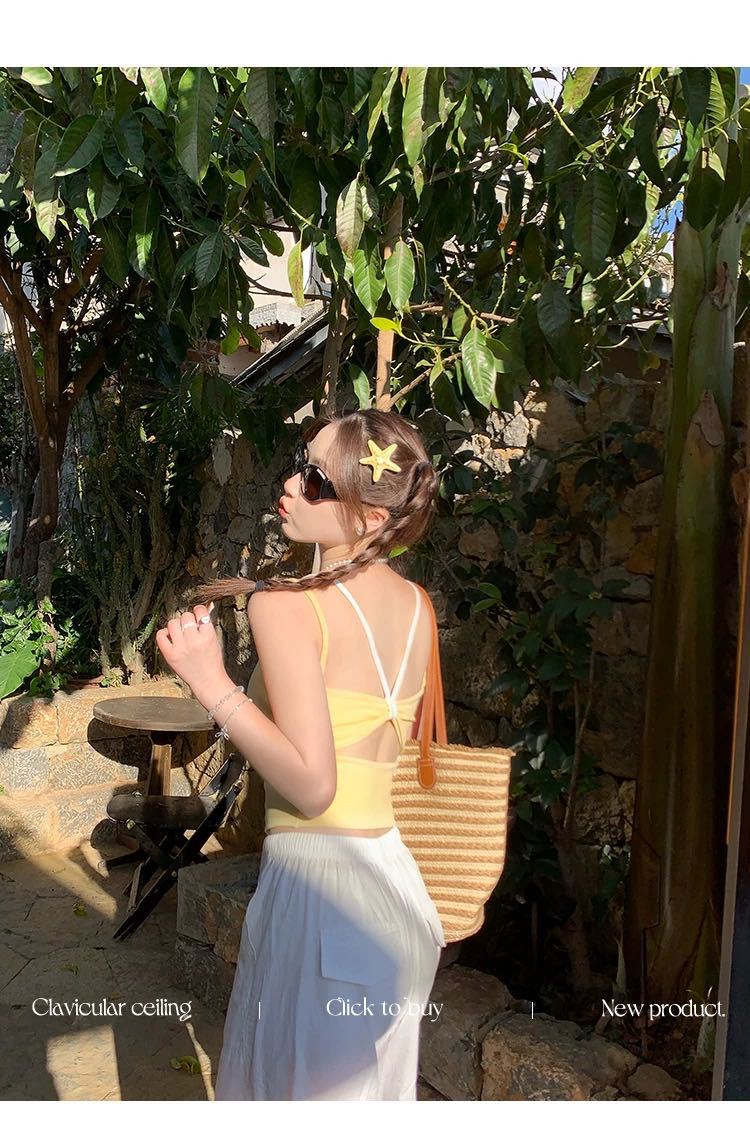 【夏天必备❗️假两件撞色辣妹吊带】撞色系镂空纯欲美背,多巴胺特调,假两件露背小吊带,新款外穿修身显瘦内搭短款上衣L