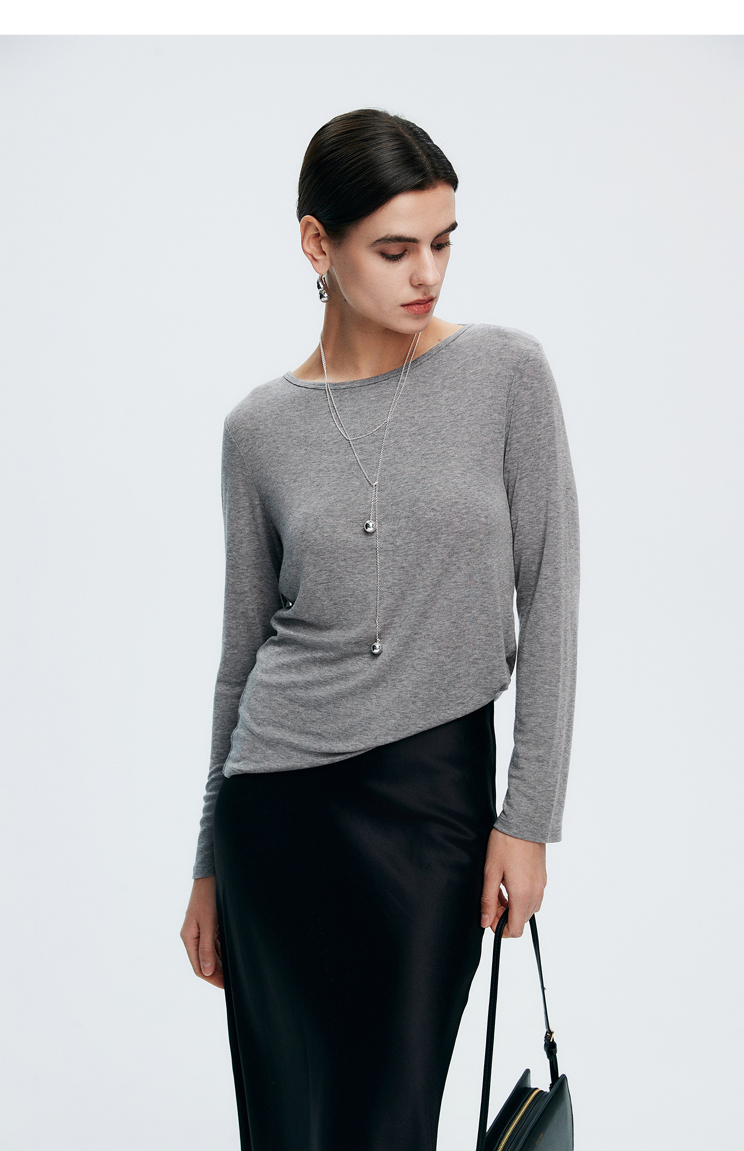 棉仓362601007-初棉天丝羊毛荡领正反可穿打底衫奢感微透舒适软糯打底衫