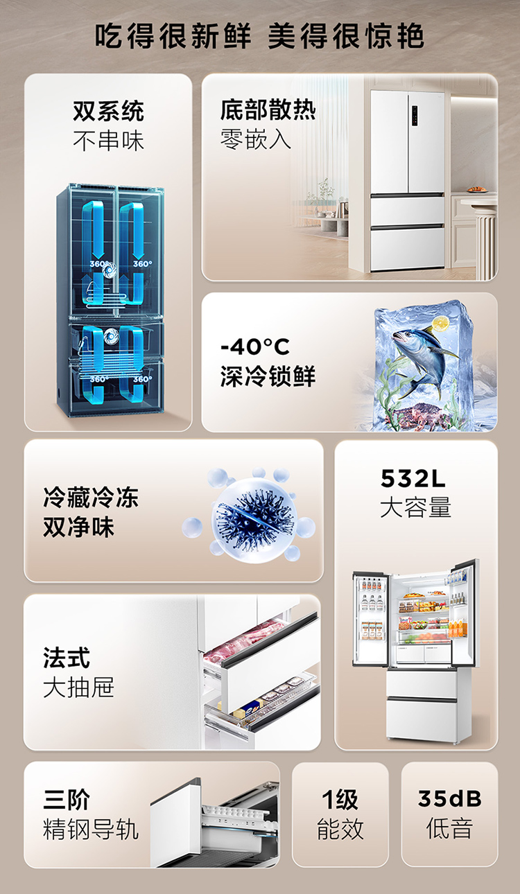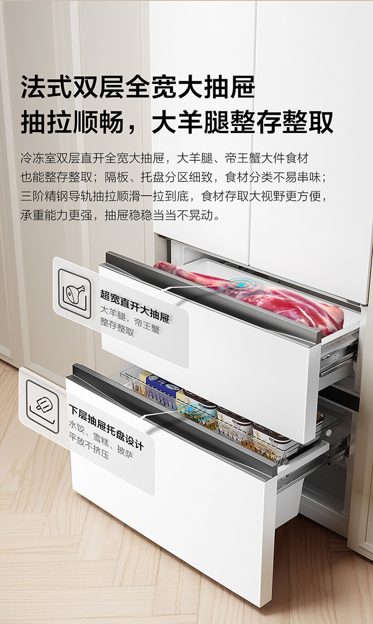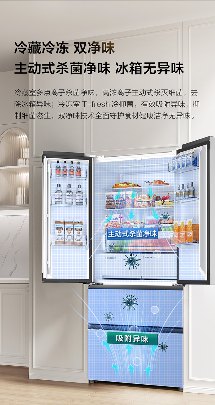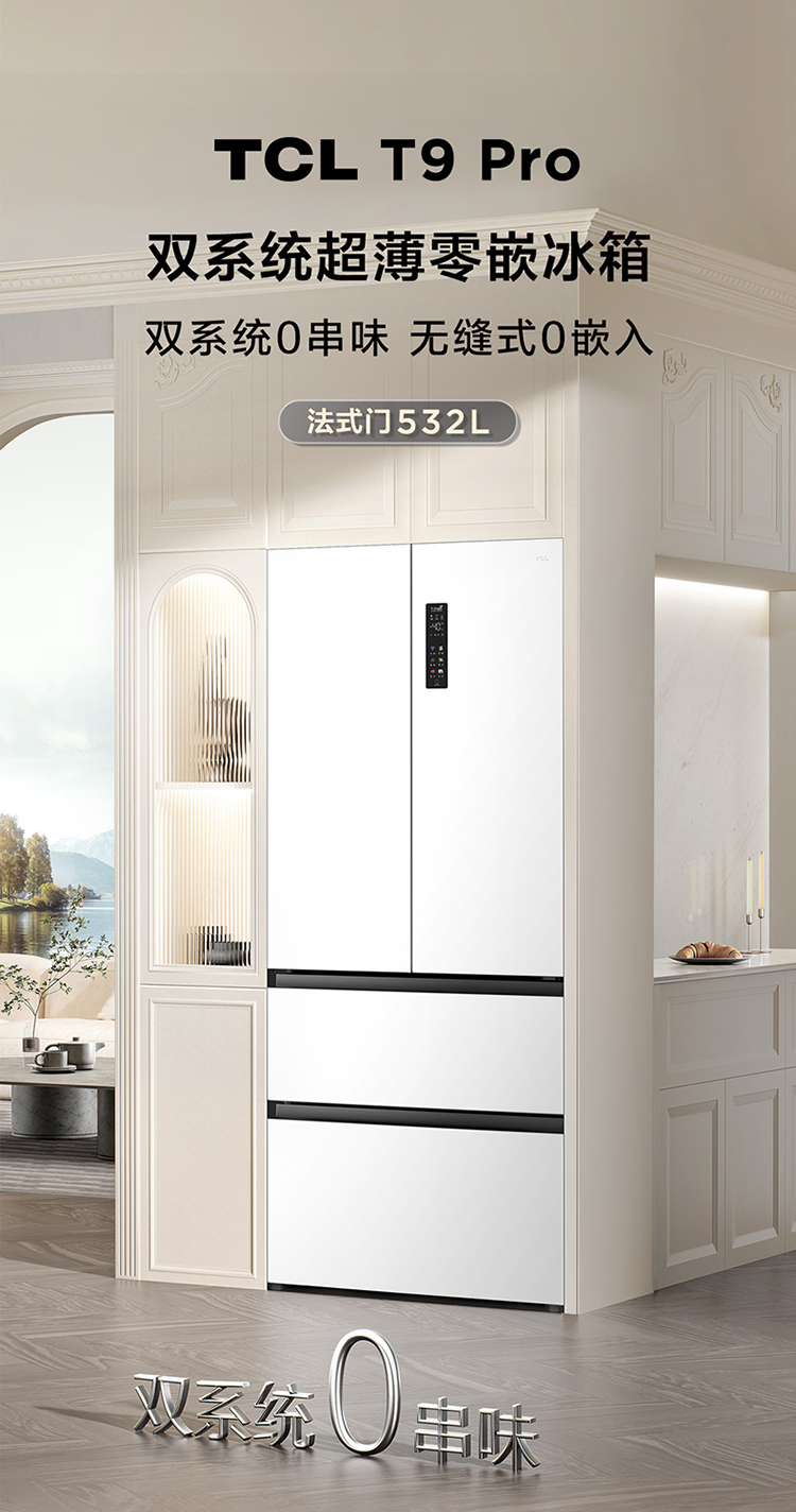 TCL 532升T9 Pro法式多门四开门双系统双净味超薄零嵌入式底部散热冰箱 R532T9-DQS