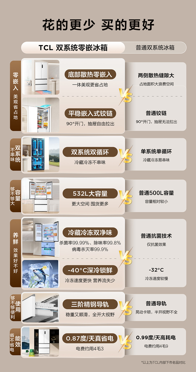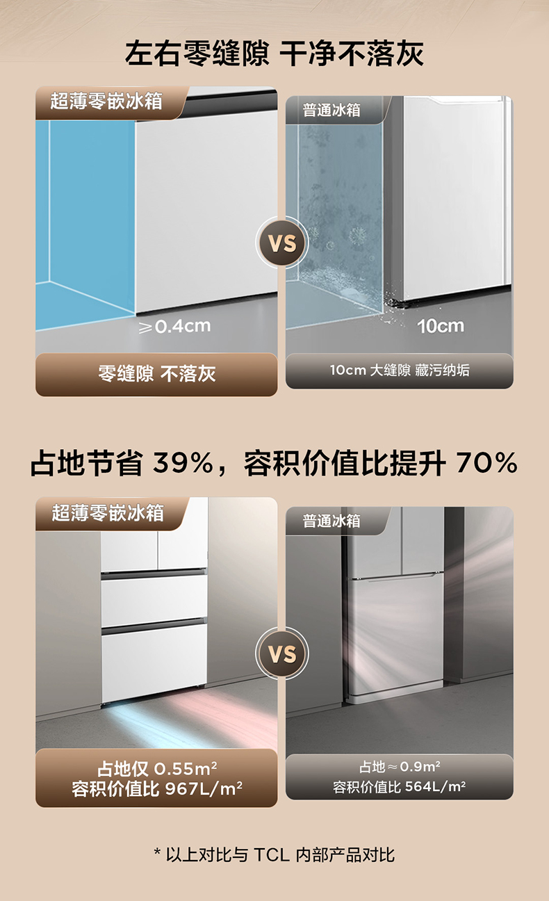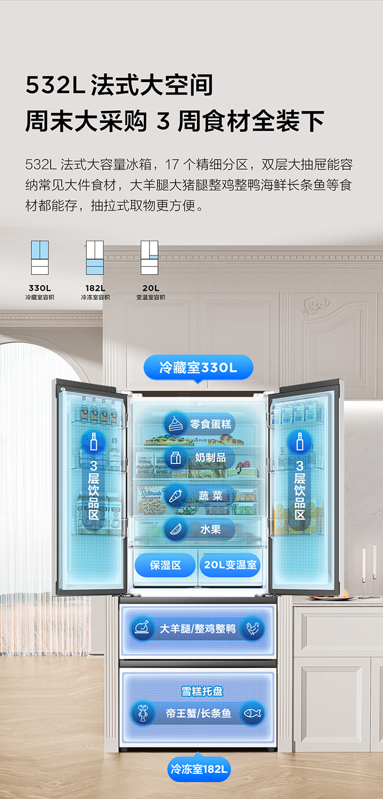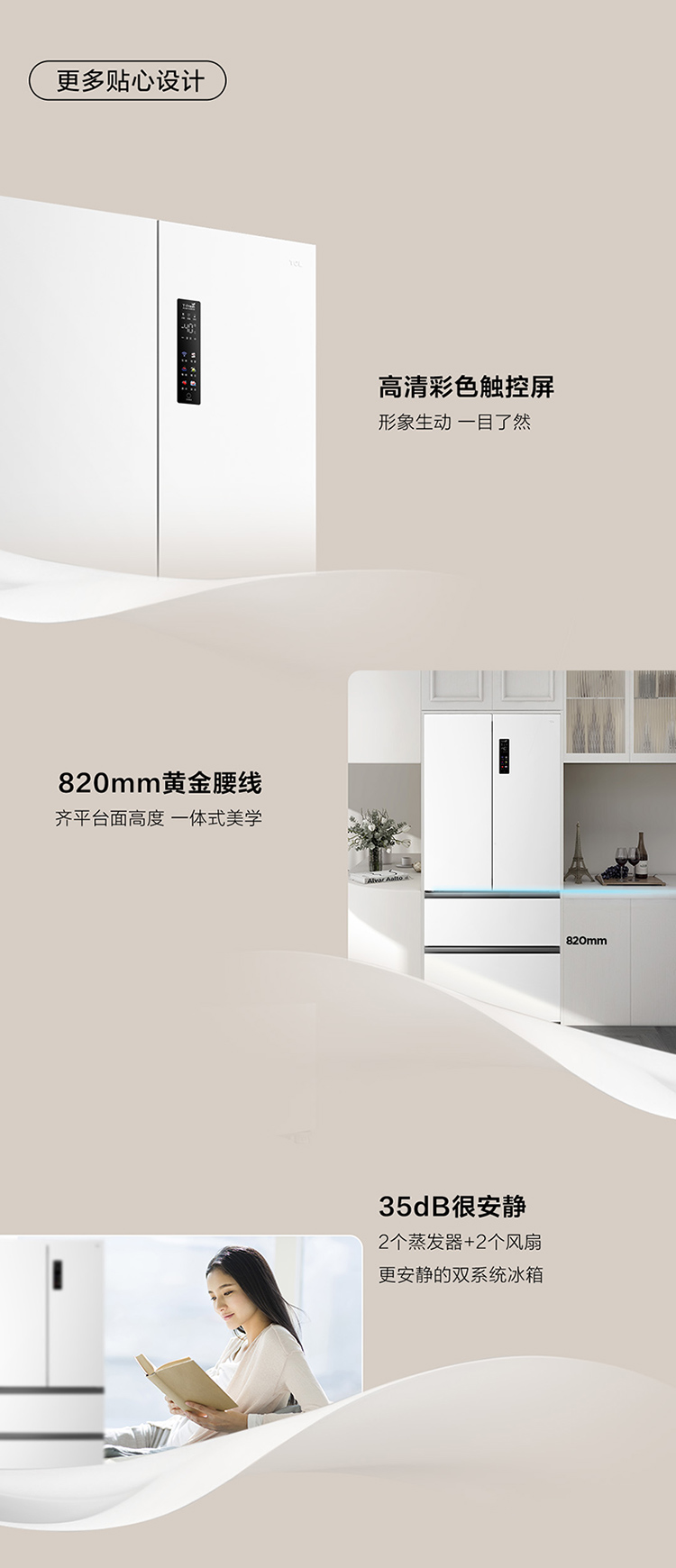 TCL 532升T9 Pro法式多门四开门双系统双净味超薄零嵌入式底部散热冰箱 R532T9-DQS