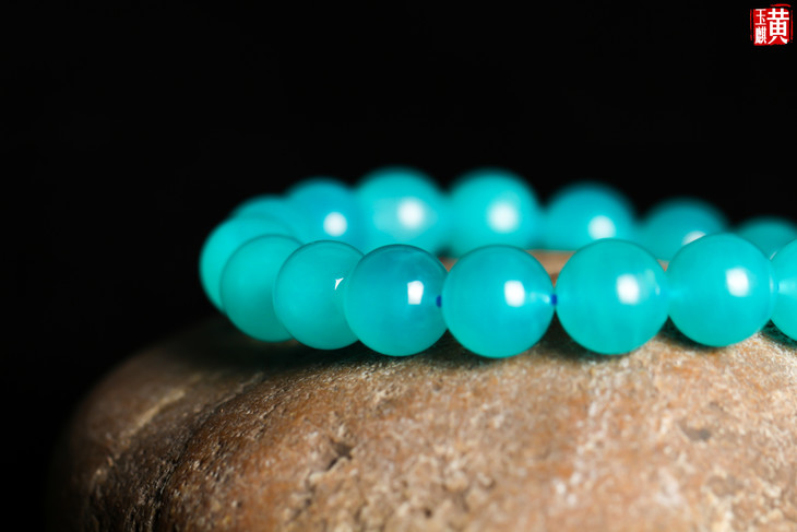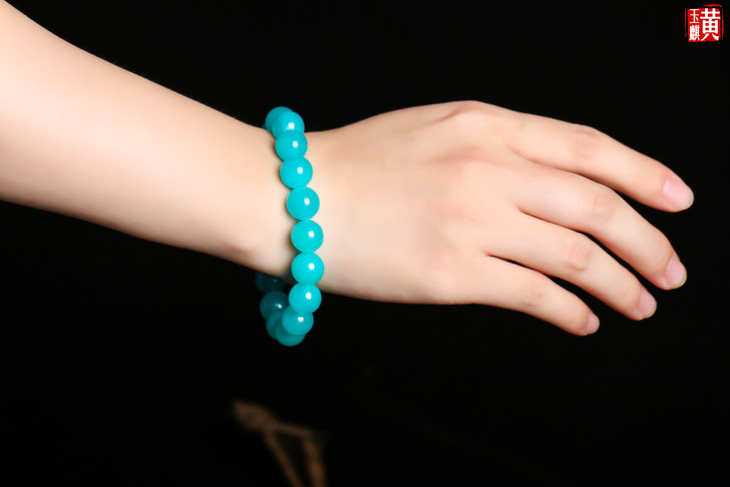 冰种天河石手串,冰透水润,晶莹剔透,靓蓝色,鲜艳靓丽,实物更加鲜亮,佩戴腕间超美哒,美艳吸睛。