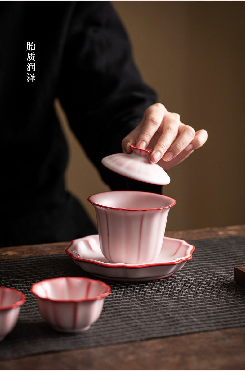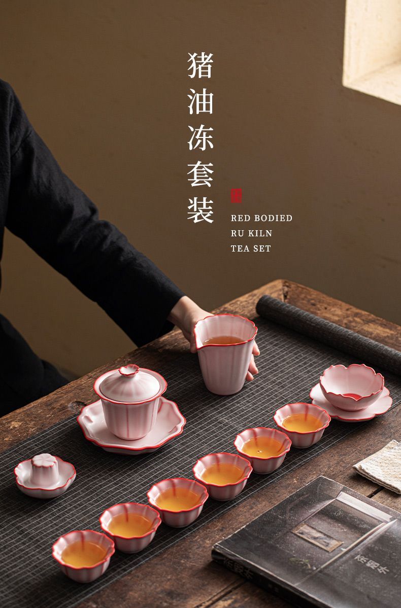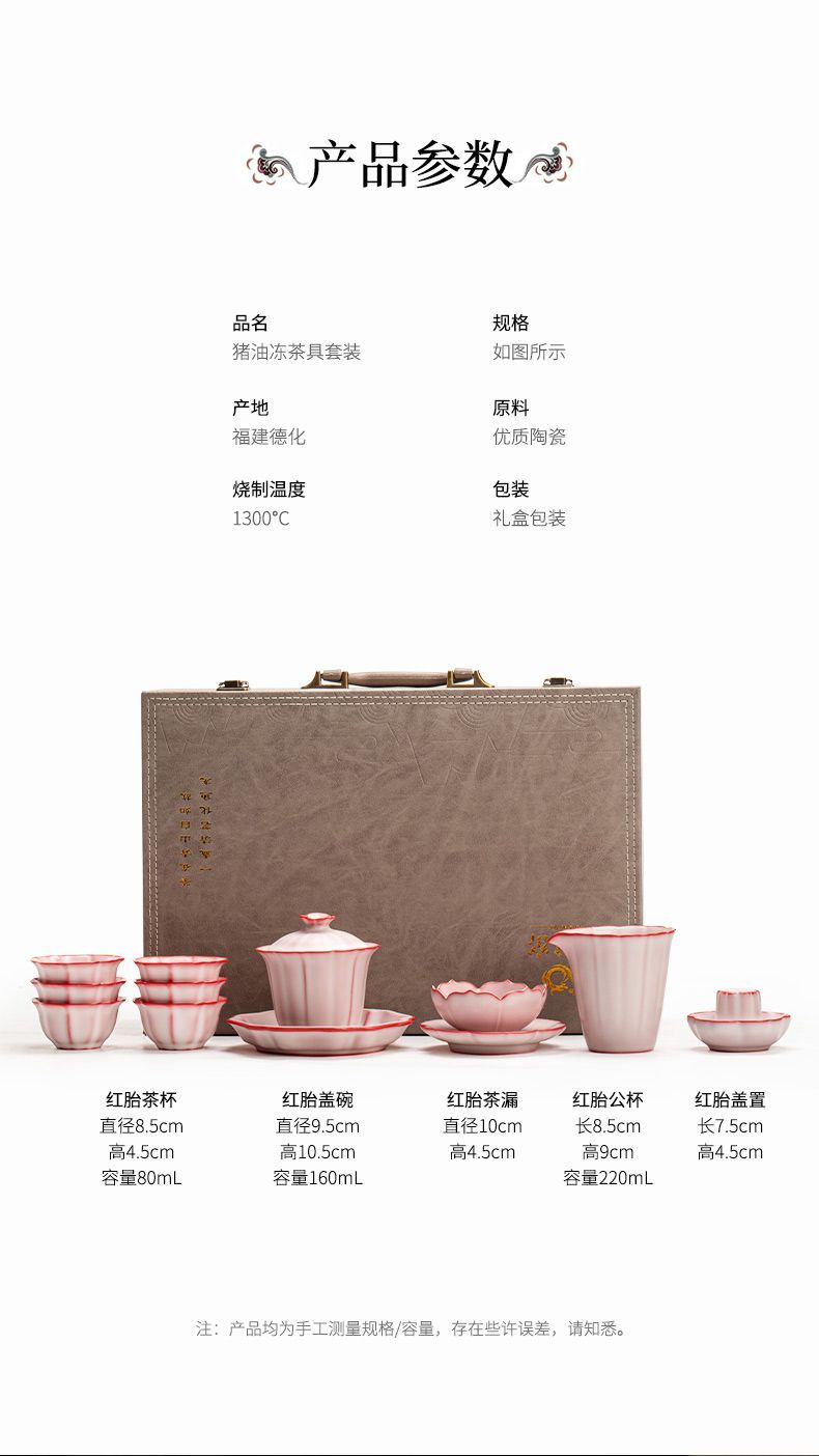 猪油冻红胎陶瓷功夫茶具套装家用茶壶盖碗泡茶器高档轻奢礼盒装