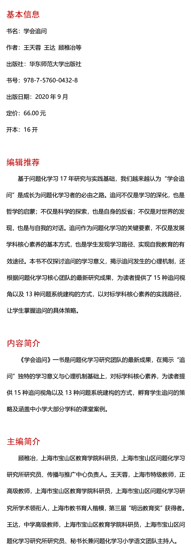 学会追问 问题化学习丛书 王天蓉 王达 顾稚冶等编著 正版 华东师范大学出版社