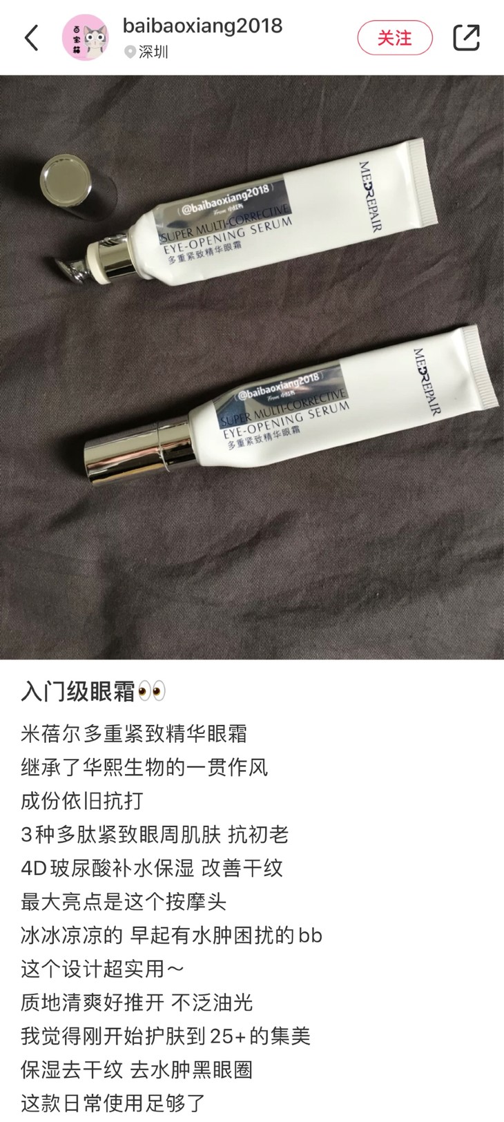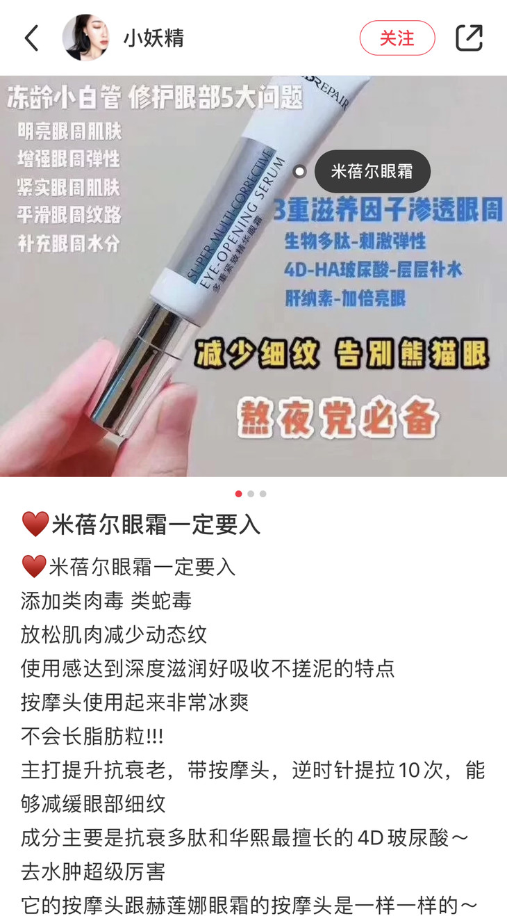 上周上了MedRepair米蓓尔的固态闪释冻干面膜和多元玻尿酸精华水,真的很受欢迎,也是真的非常好用!其实之前在选米蓓尔产品的时候,这支眼霜也是我觉得非常优秀的,之前断货了一阵,这次OK啦!