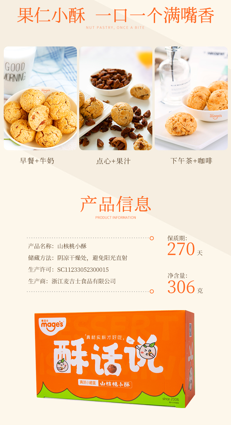 休闲零食-麦吉士山核桃坚果小酥306g*2盒