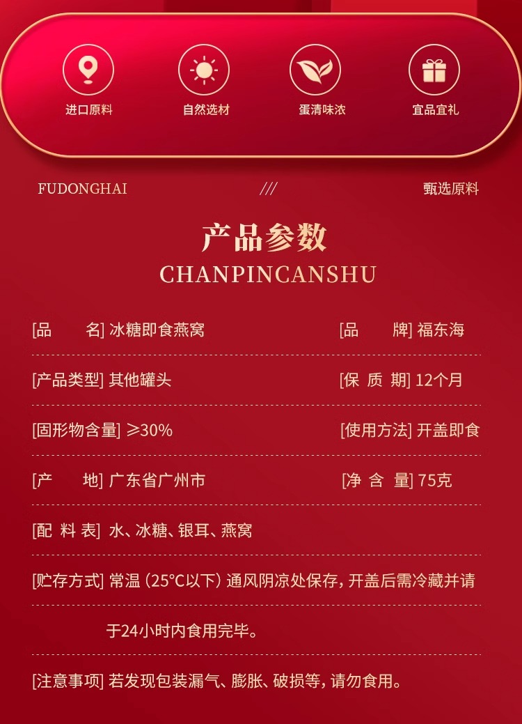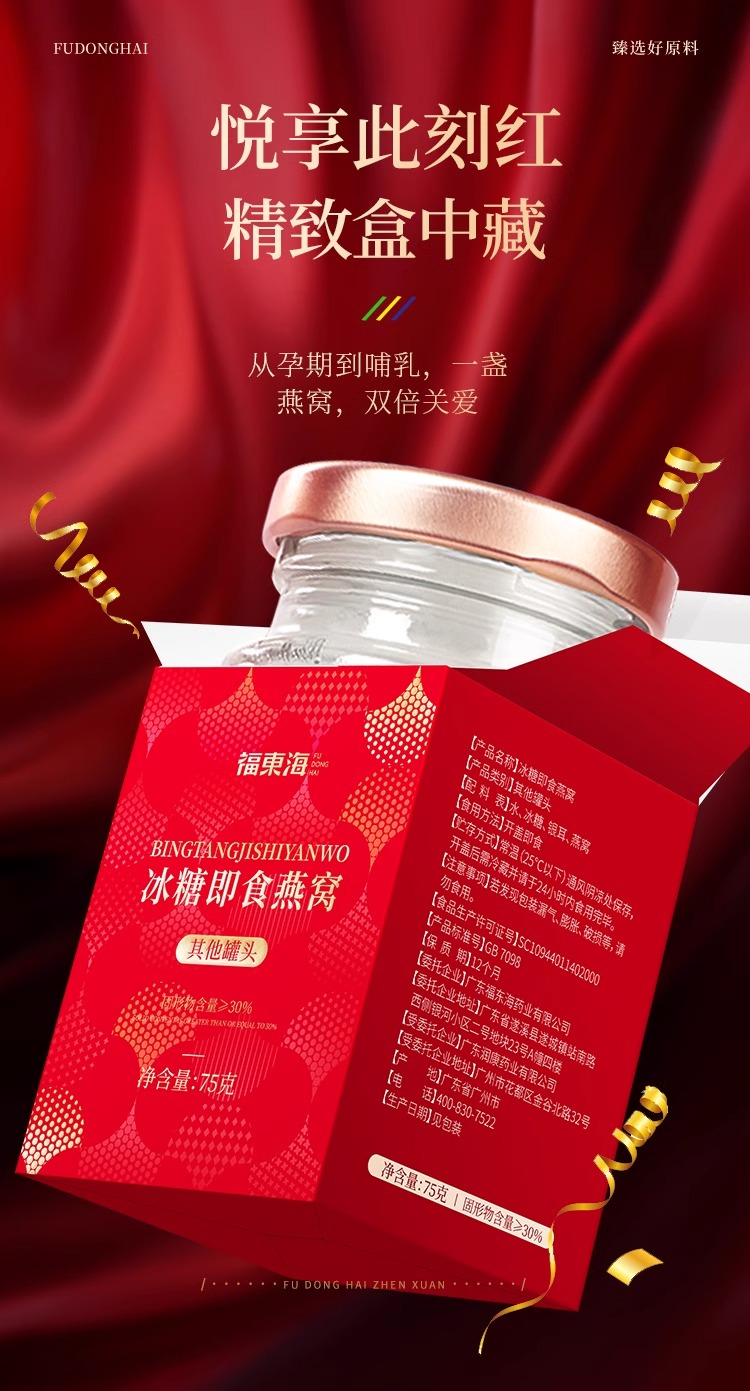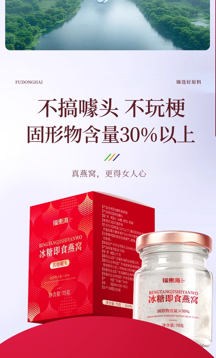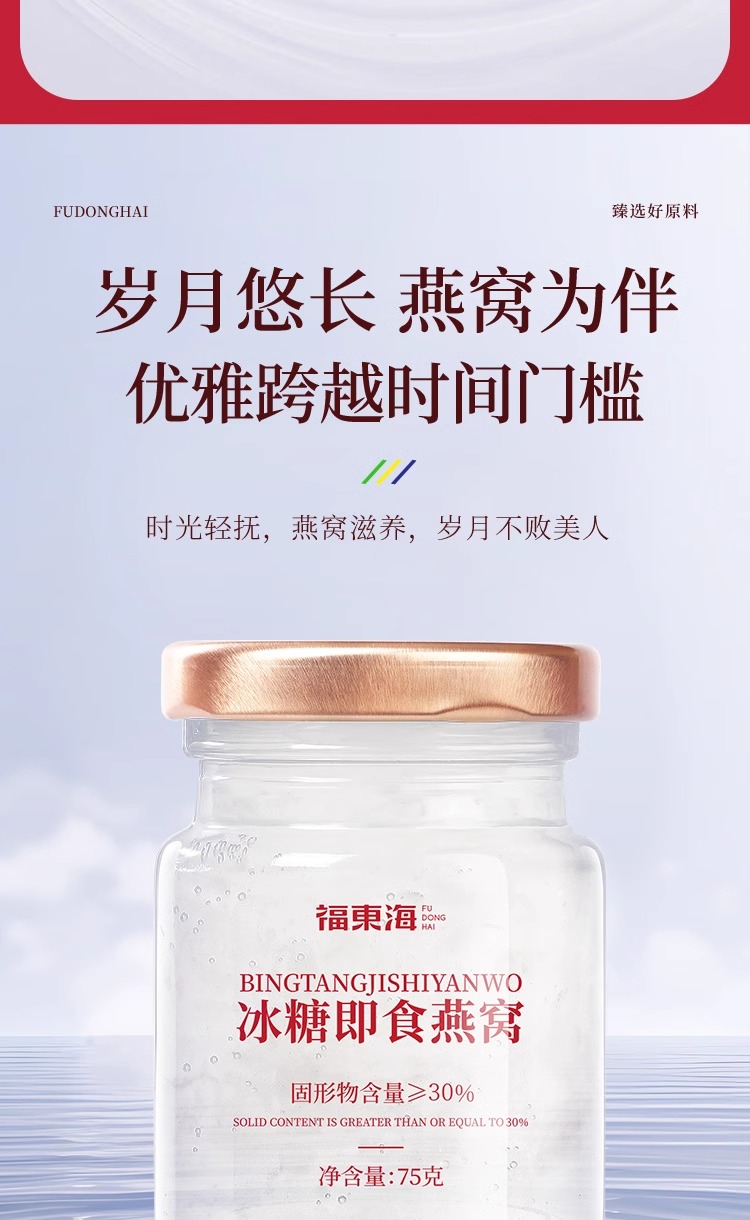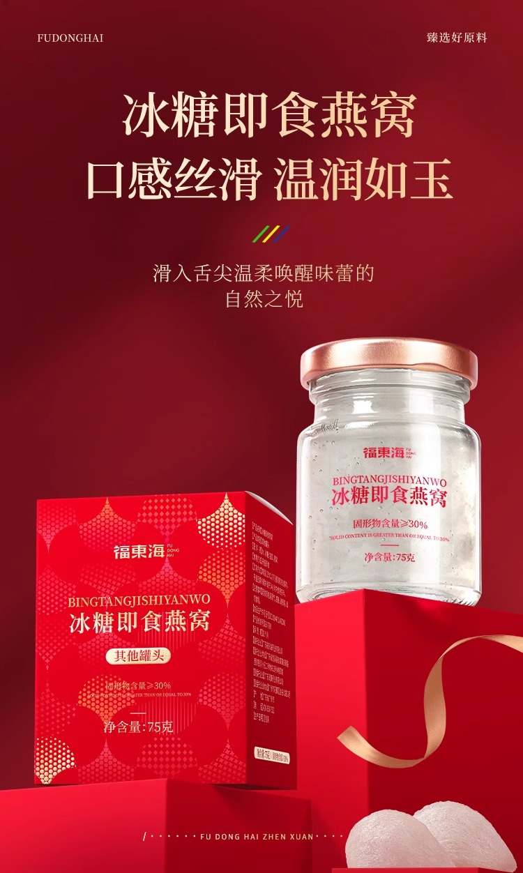 福东海 冰糖即食燕窝75g 冰糖燕窝礼 佳品 孕妇产妇滋补营养品 送长辈送女性礼物