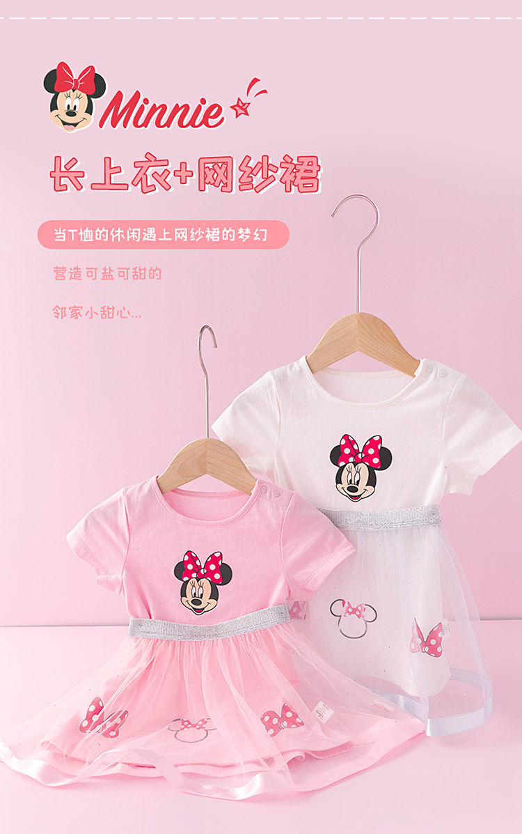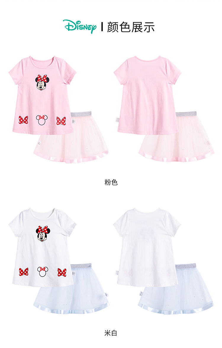 迪士尼童装 女童夏季套装宝宝短袖新款洋气上衣仙裙子两件套212T1247