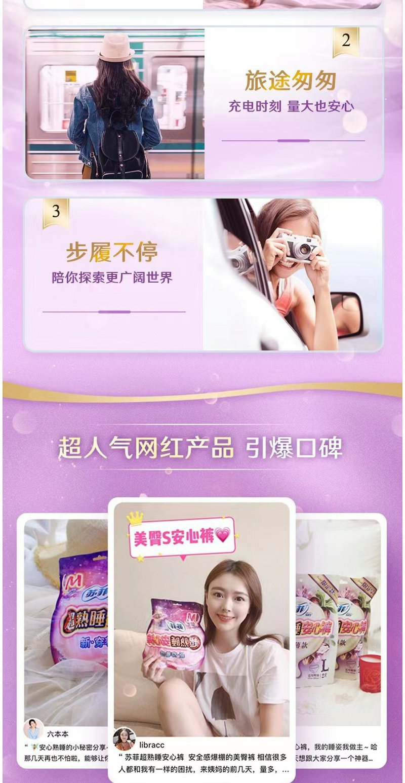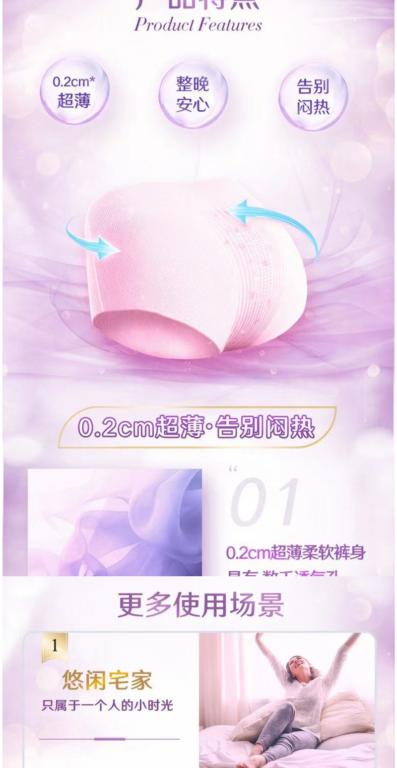 苏菲安心裤丝薄透气姨妈裤安全裤卫生巾 L码5+2条