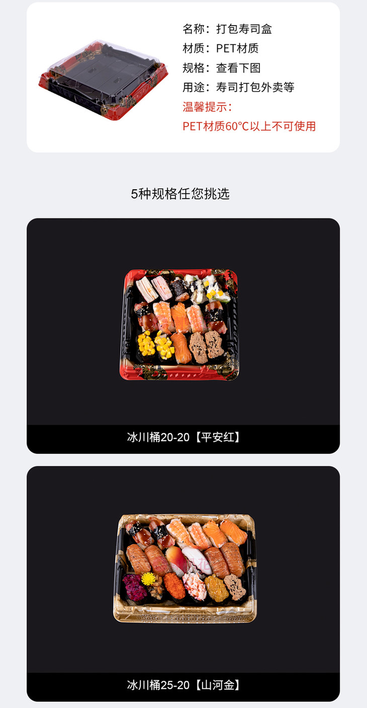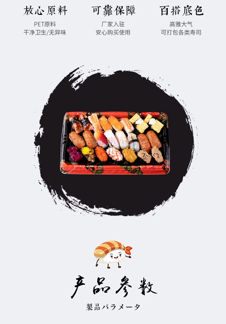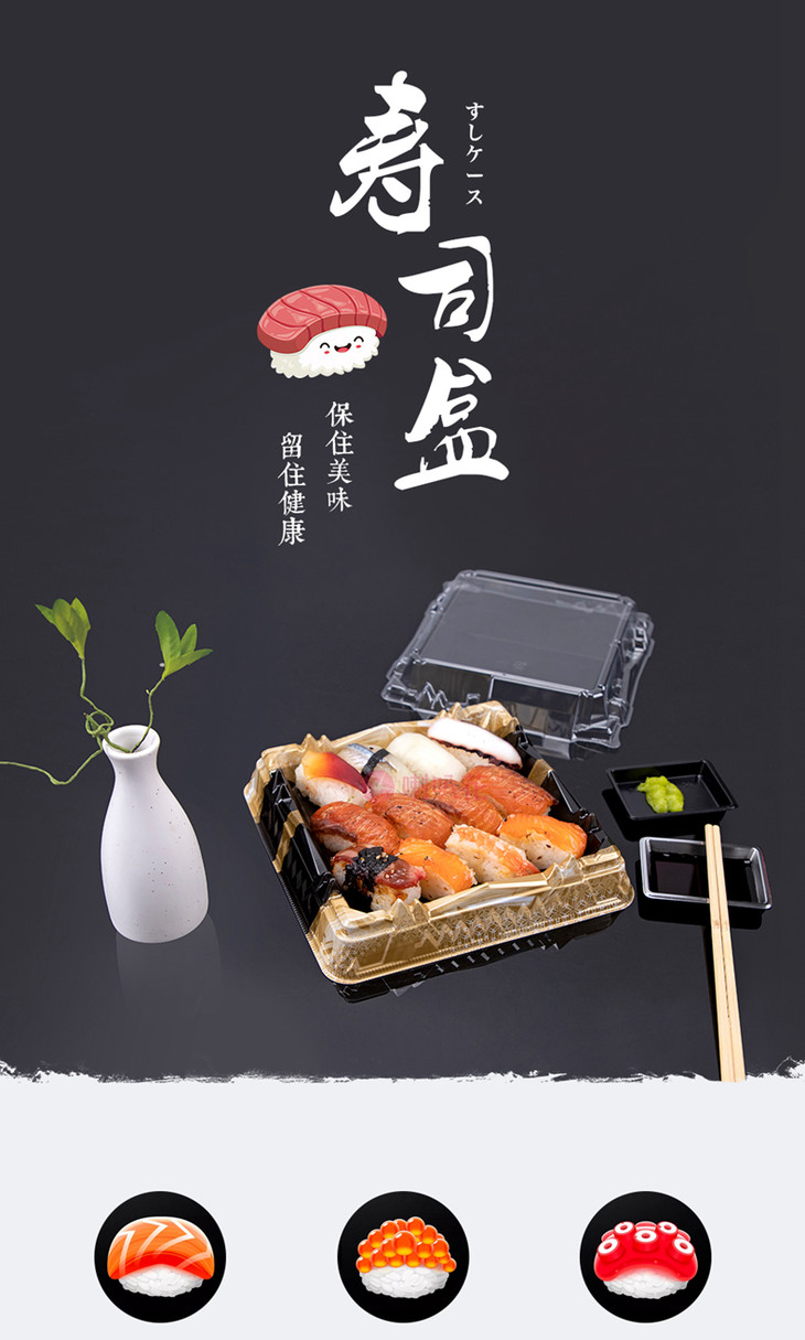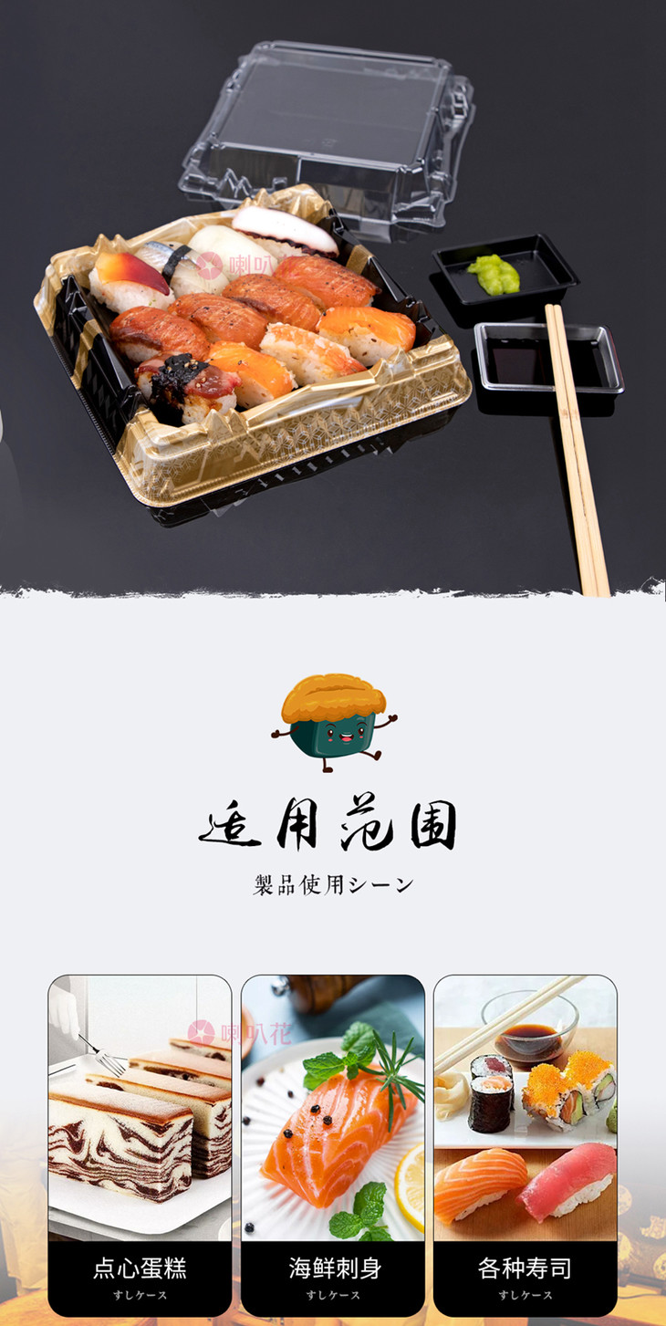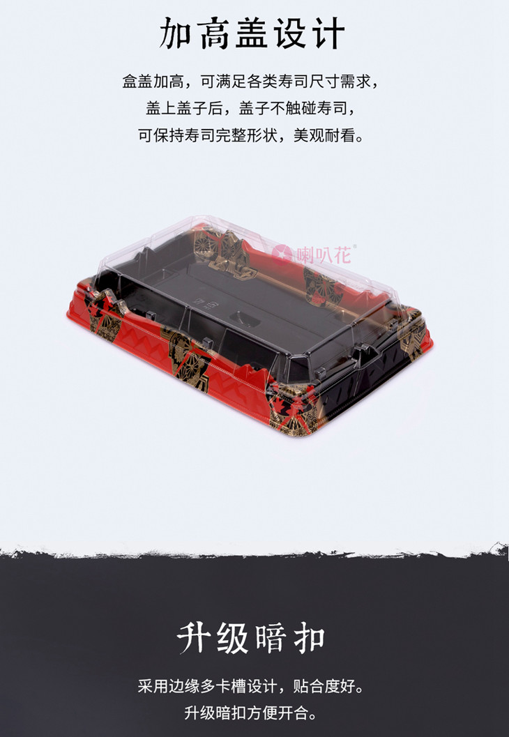 喇叭花寿司包装盒印花打包盒碟子一次性日式塑料外卖三文鱼刺身