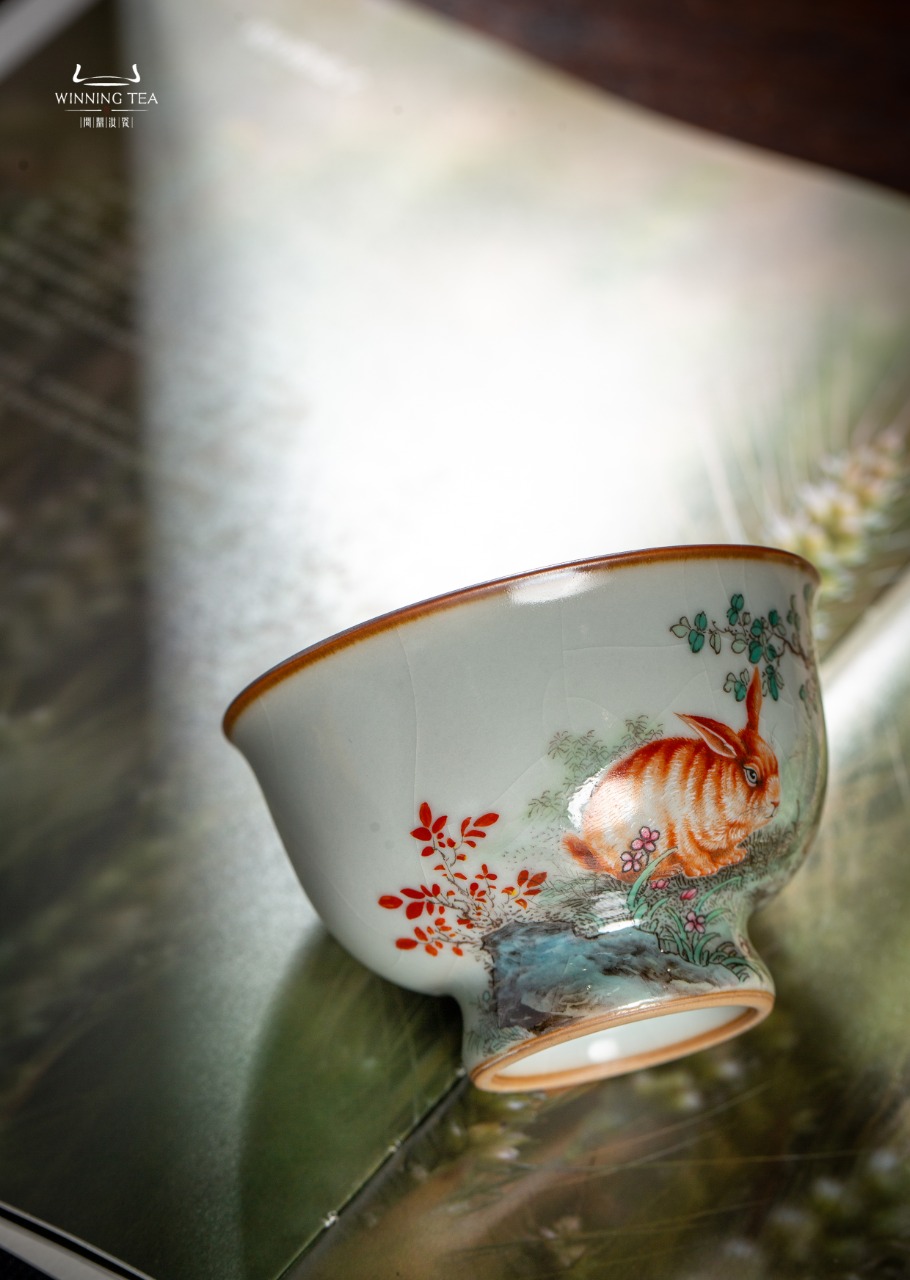 问鼎汝瓷鼎峰柴窑天青天河杯(山野逸兔)