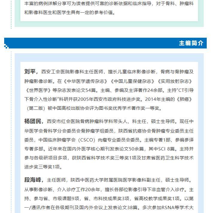 随着影像检查设备和技术的不断更新,以及图像获取、处理技术的不断发展,医生所能获得的信息量更加丰富、可靠。本书涵盖了骨病与骨肿瘤的全面影像资料,其丰富的病例详解分享可为读者提供可靠的诊断依据和临床指导,对于骨科、肿瘤科和影像科医生和医学生具有一定的参考价值。