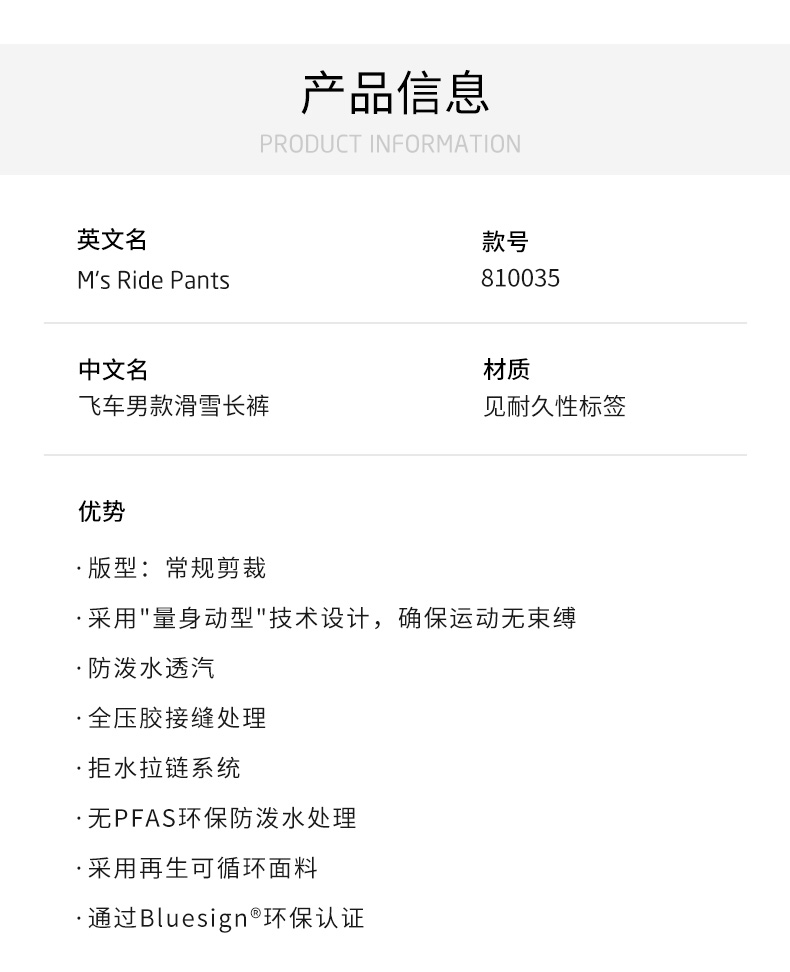 HOUDINI胡丁尼Ride Pants飞车户外男防风单双板冬季滑雪裤 810035