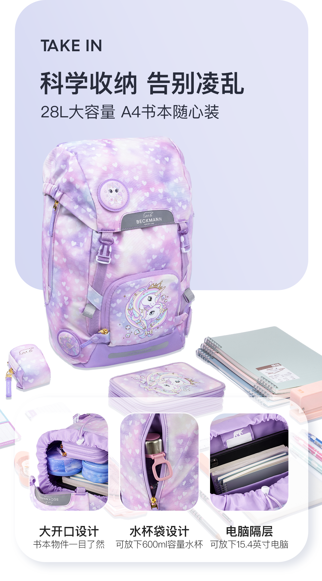 【赠送笔袋】贝克曼Classic Maxi大容量28L系列3-6年级小学高年级减压减负背包双肩包书包