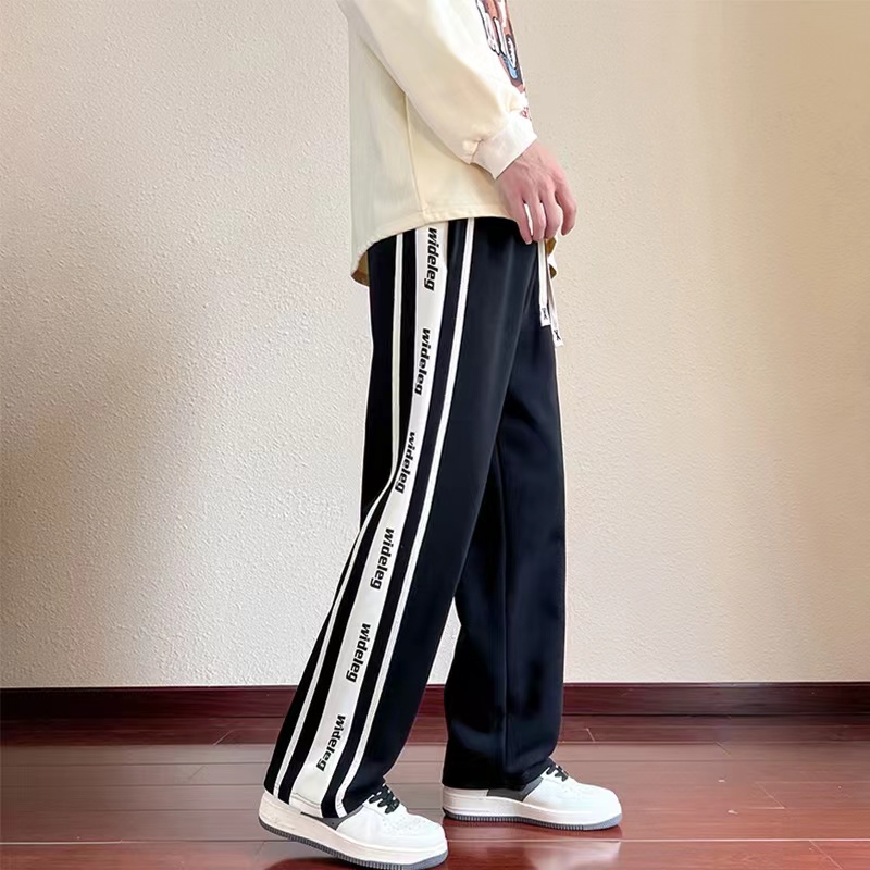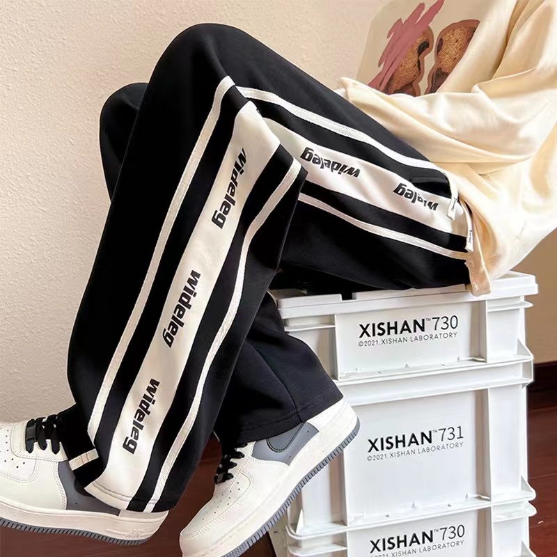 织带拼接休闲卫裤,男女同款,干净利落的显瘦裤型,简洁大气的腿部线条,量身定做版的剪裁,随意搭配上衣就显得时髦年轻!春秋bi备单品,情侣闺蜜搭配更炸街!