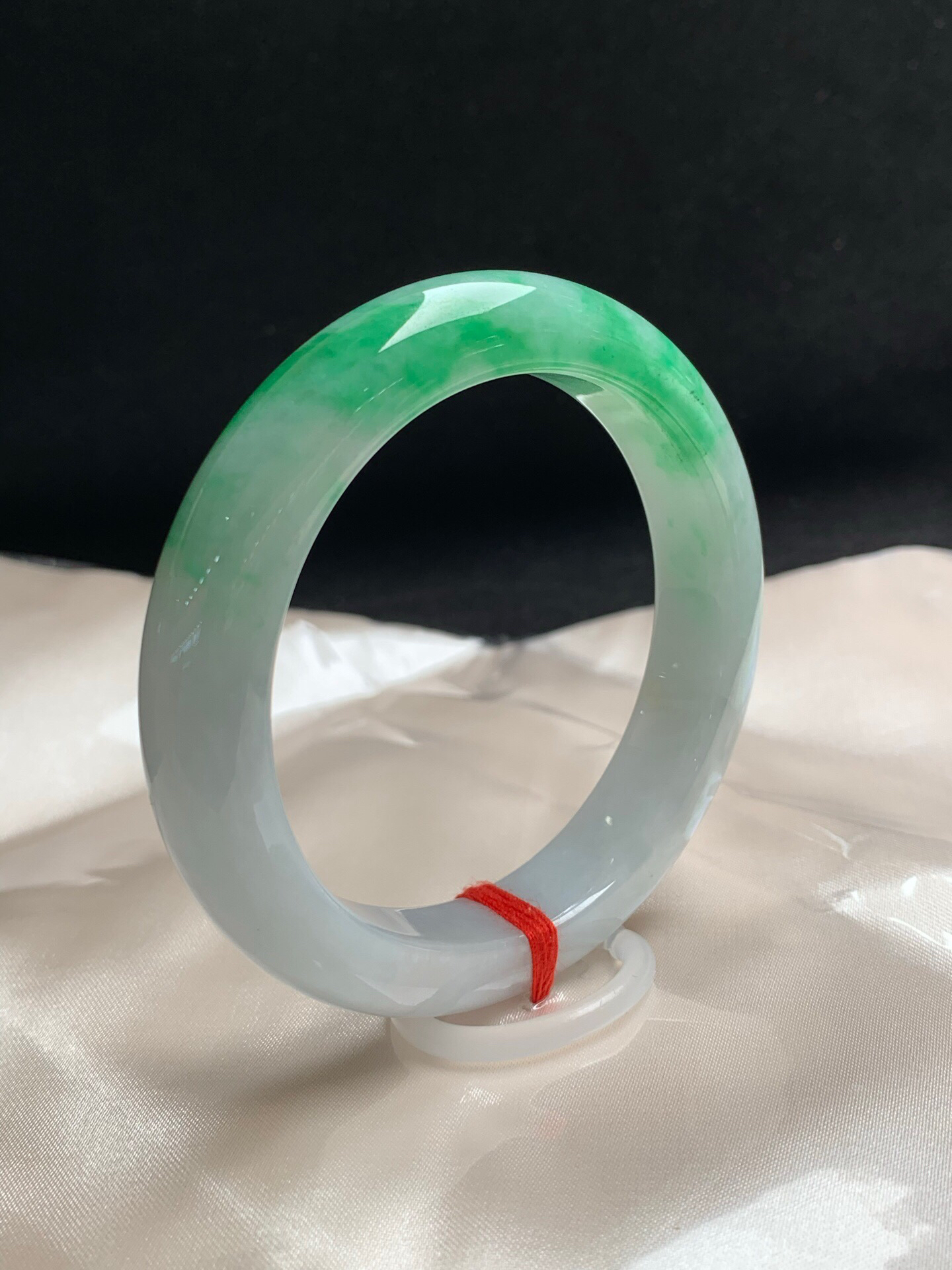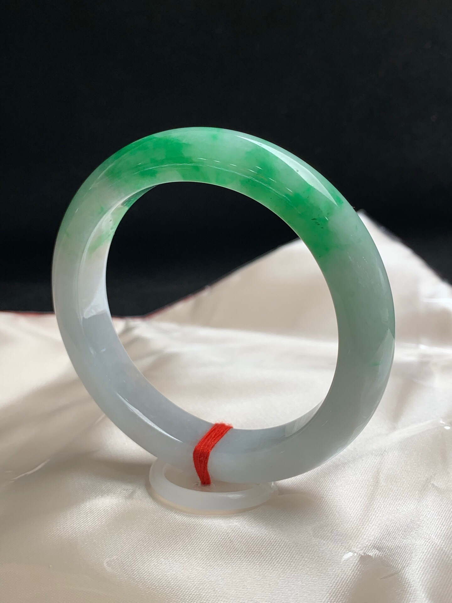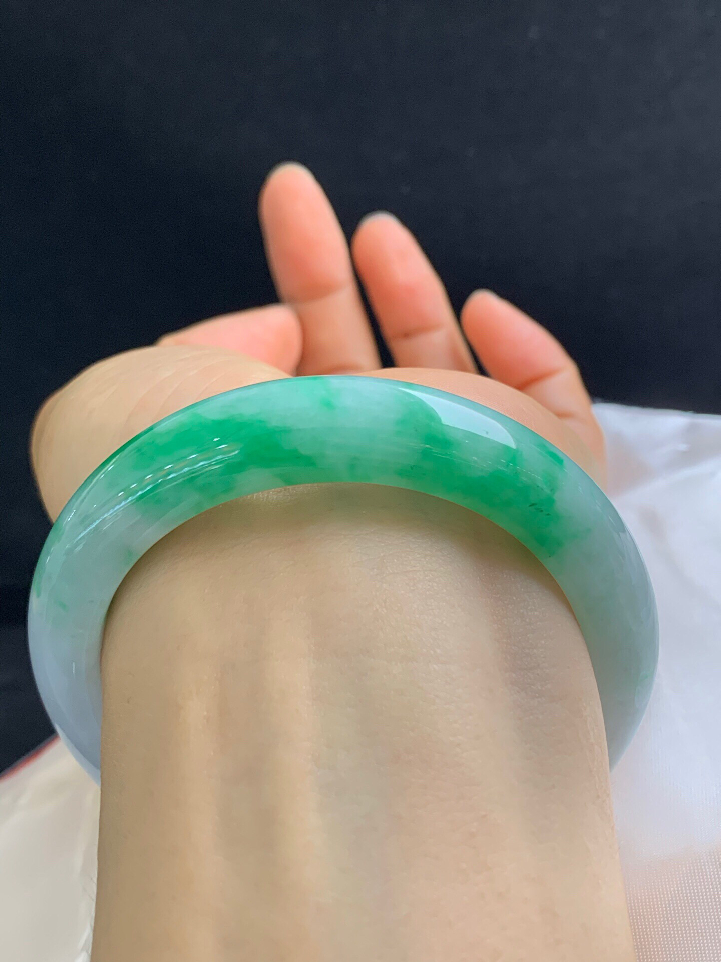 620107,57.8圈口,白底飘绿正圈平安镯,细腻有水,飘色阳,无裂,尺寸:57.8-12.6-9.5,超值价💰43800 #优石客珠宝#香玉荟萃