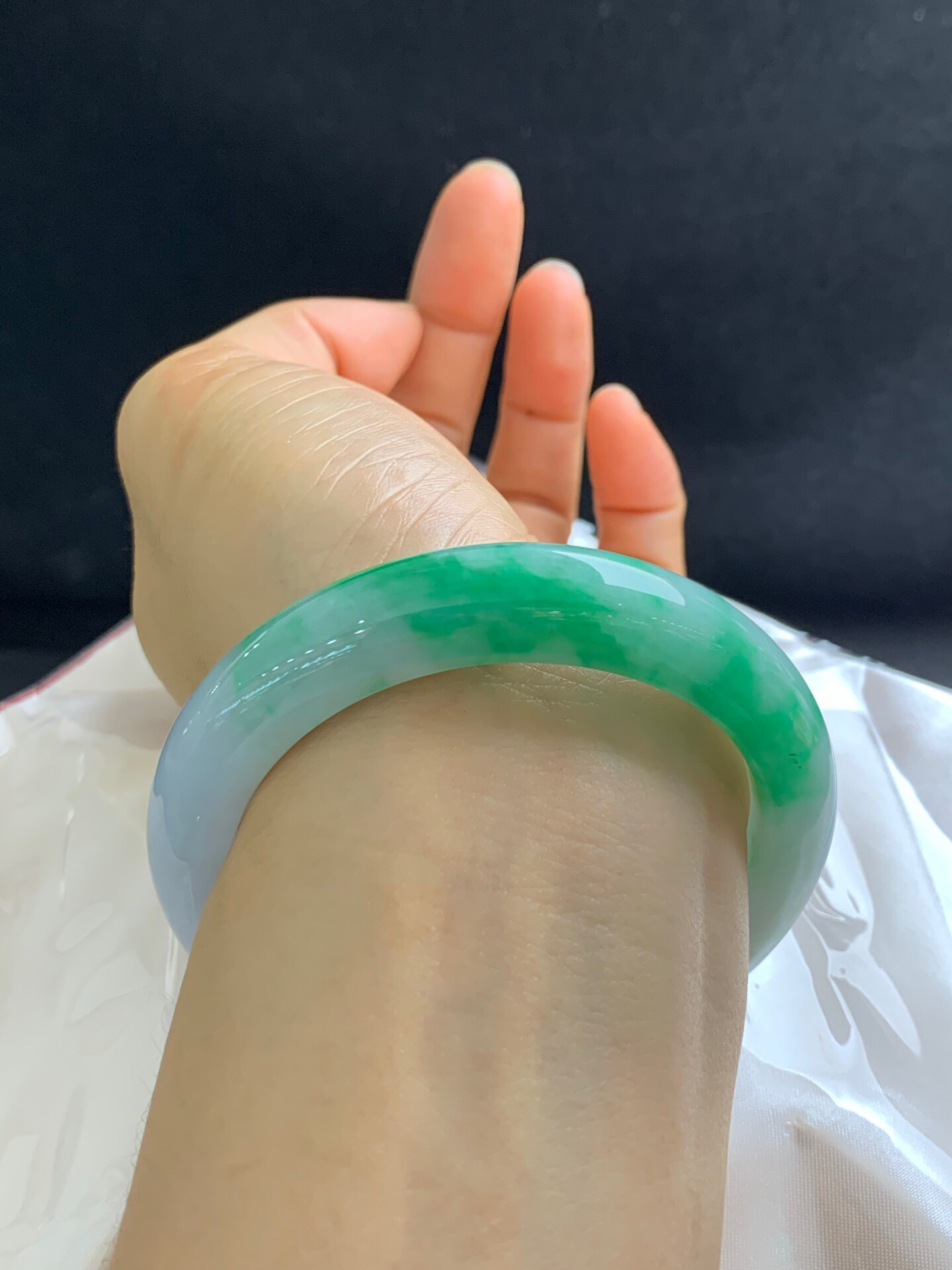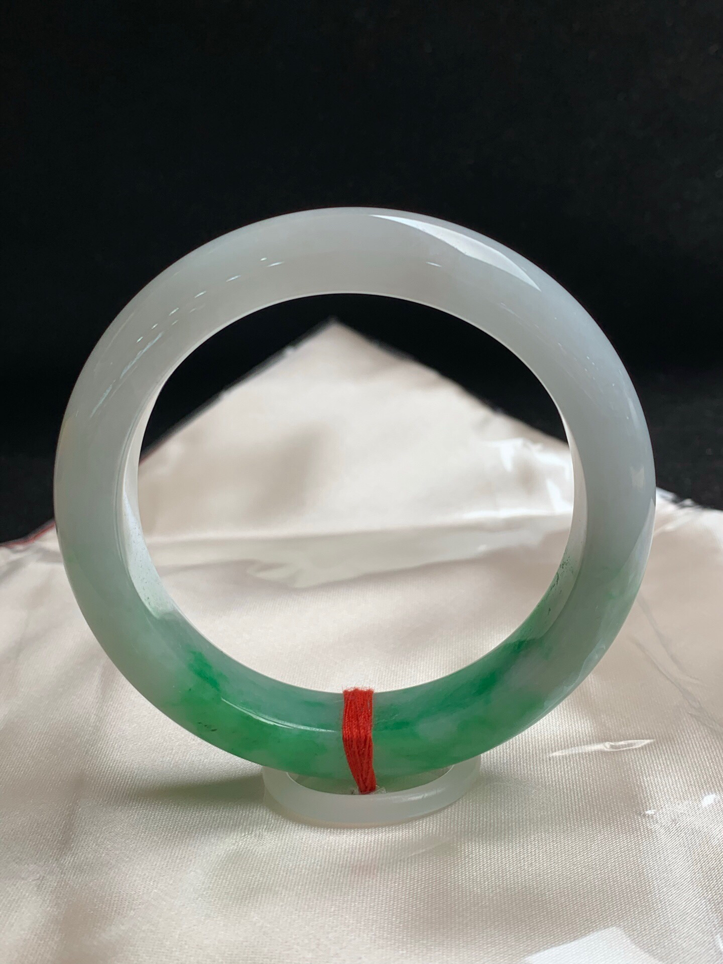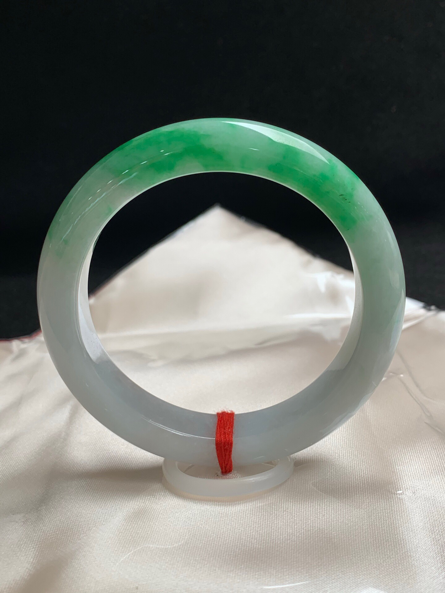 620107,57.8圈口,白底飘绿正圈平安镯,细腻有水,飘色阳,无裂,尺寸:57.8-12.6-9.5,超值价💰43800 #优石客珠宝#香玉荟萃