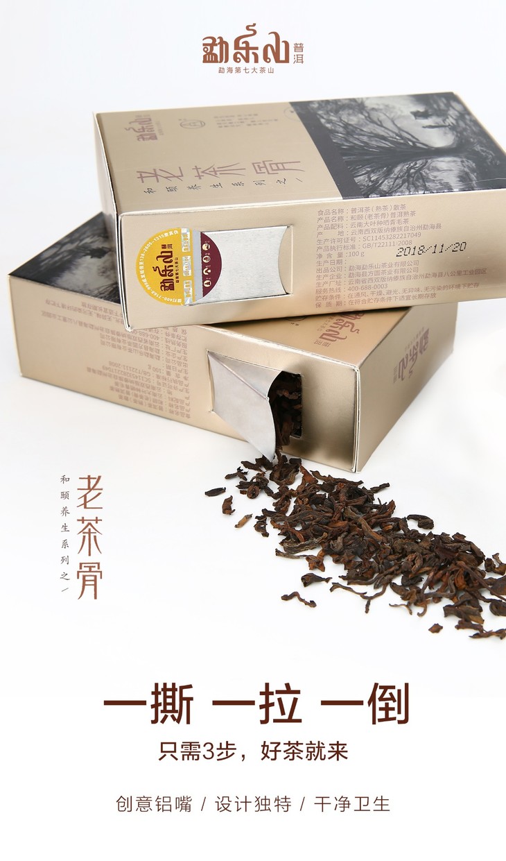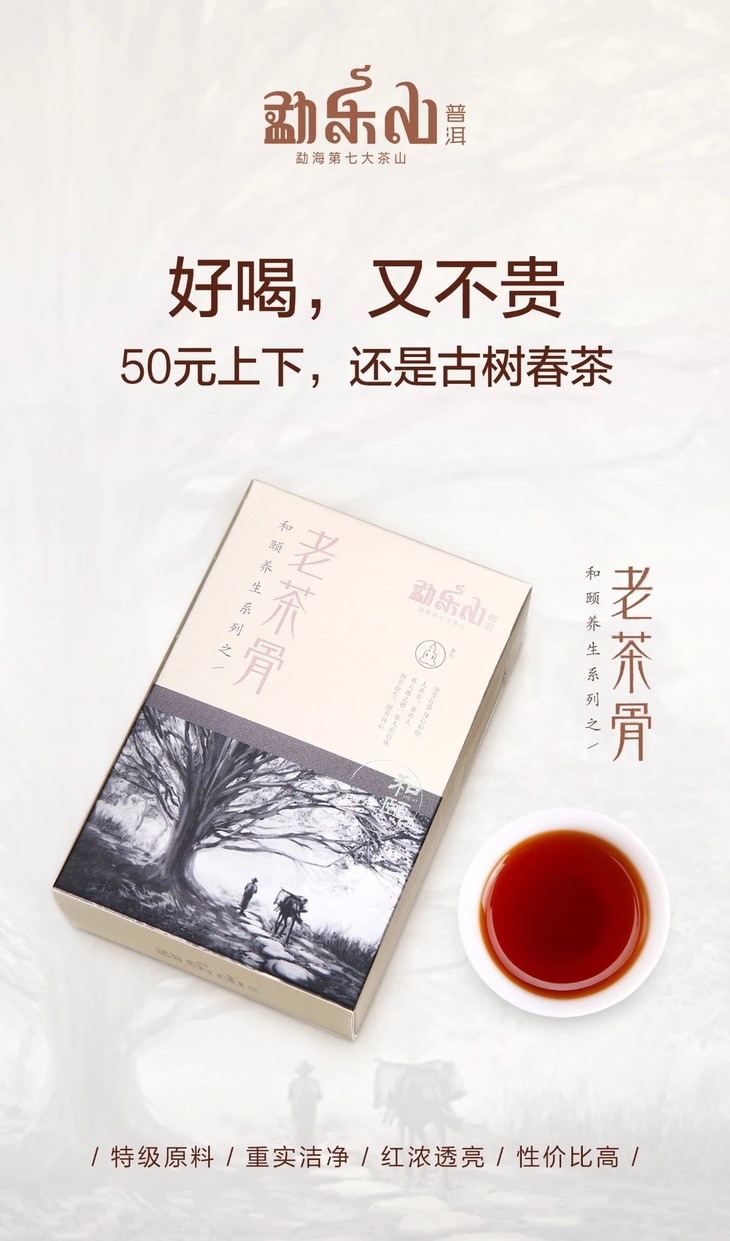 要评性价比高的熟普,老茶骨绝对能占一席。其精选勐海古树春茶之粗壮部分为底料,采用西双版纳天然山泉水经顶级工业版精细过滤,达到国家饮用标准后,再进行熟茶发酵古树春茶。特级原料,重实洁净,透亮鲜活,顺甜柔滑,滋味醇厚,回甜明显。