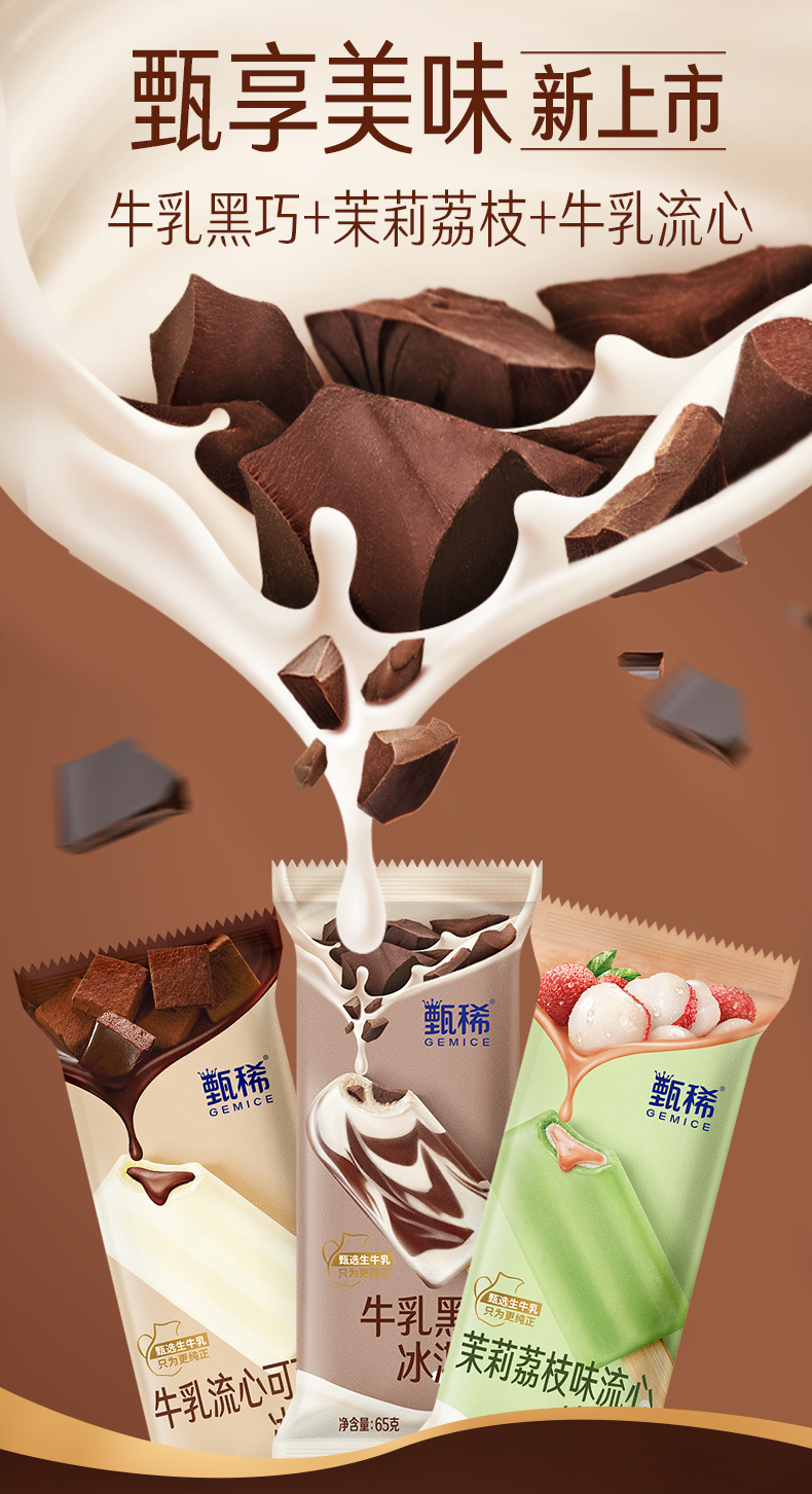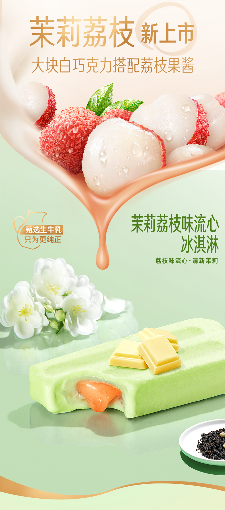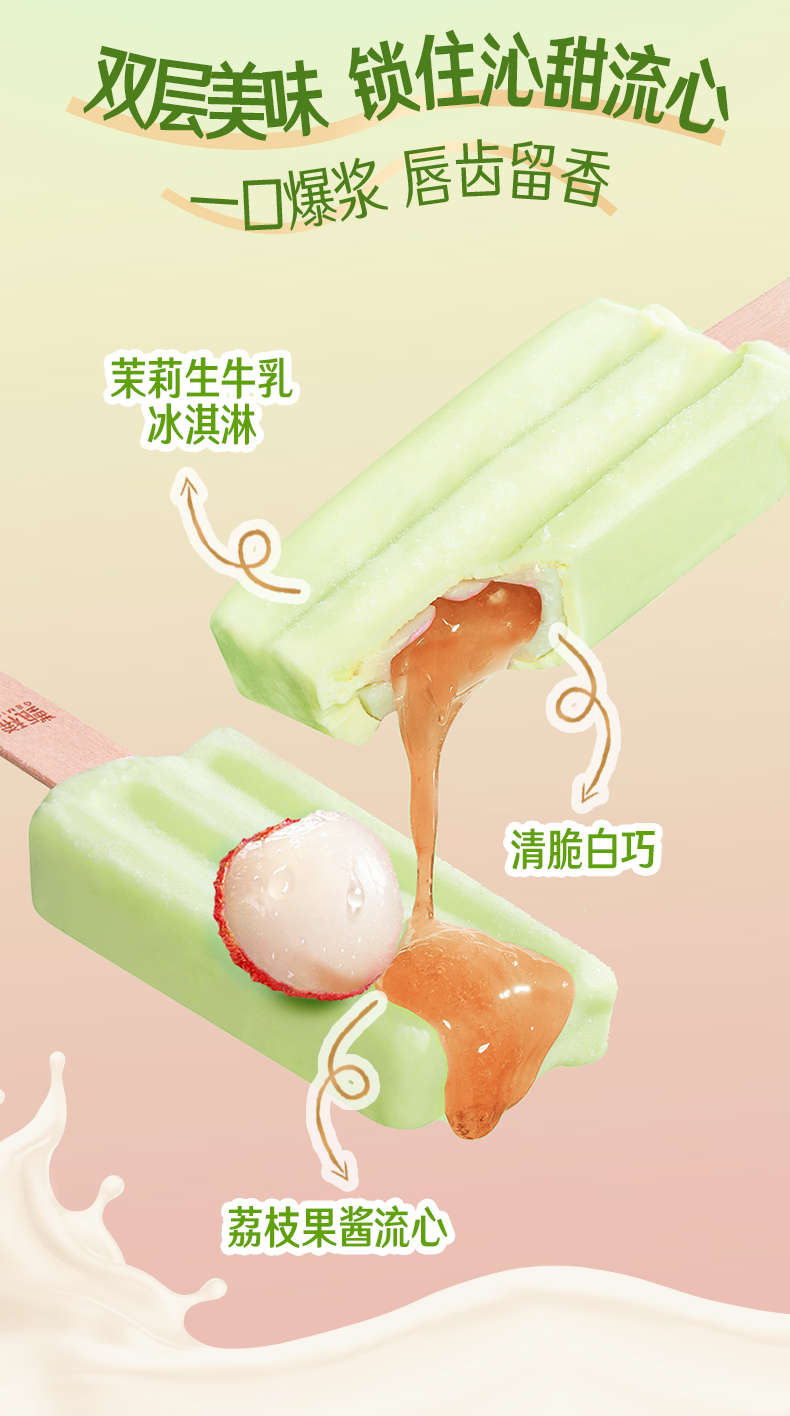 伊利冰淇淋甄稀系列茉莉荔枝味流心雪糕70g/支雪糕冰糕批发