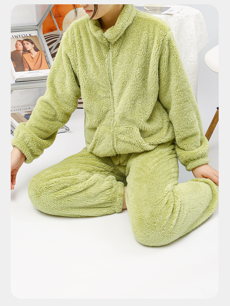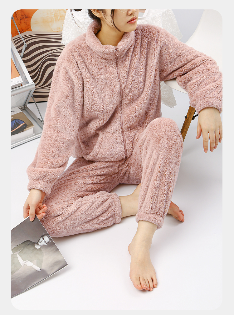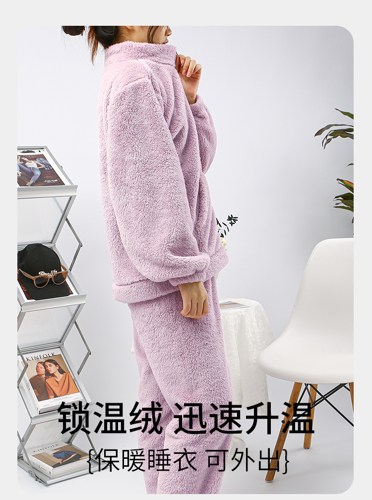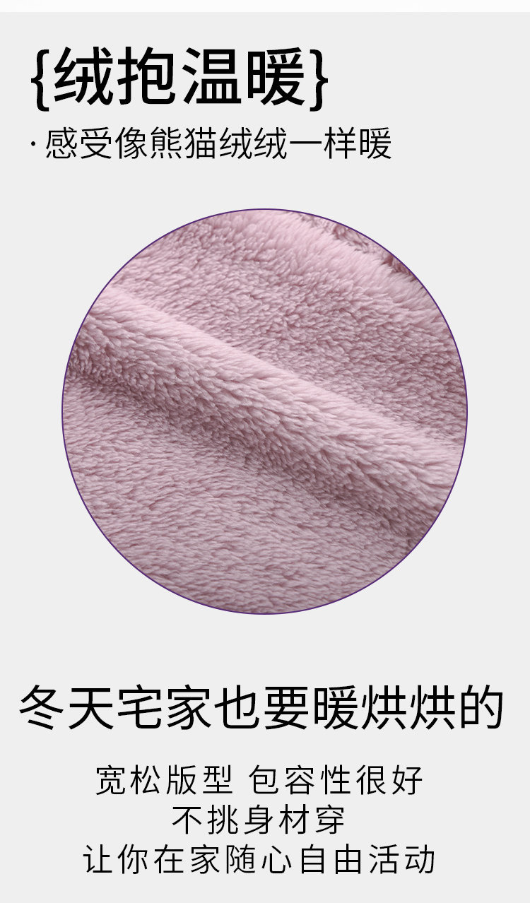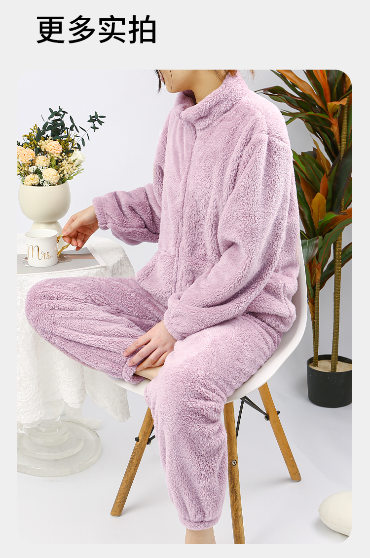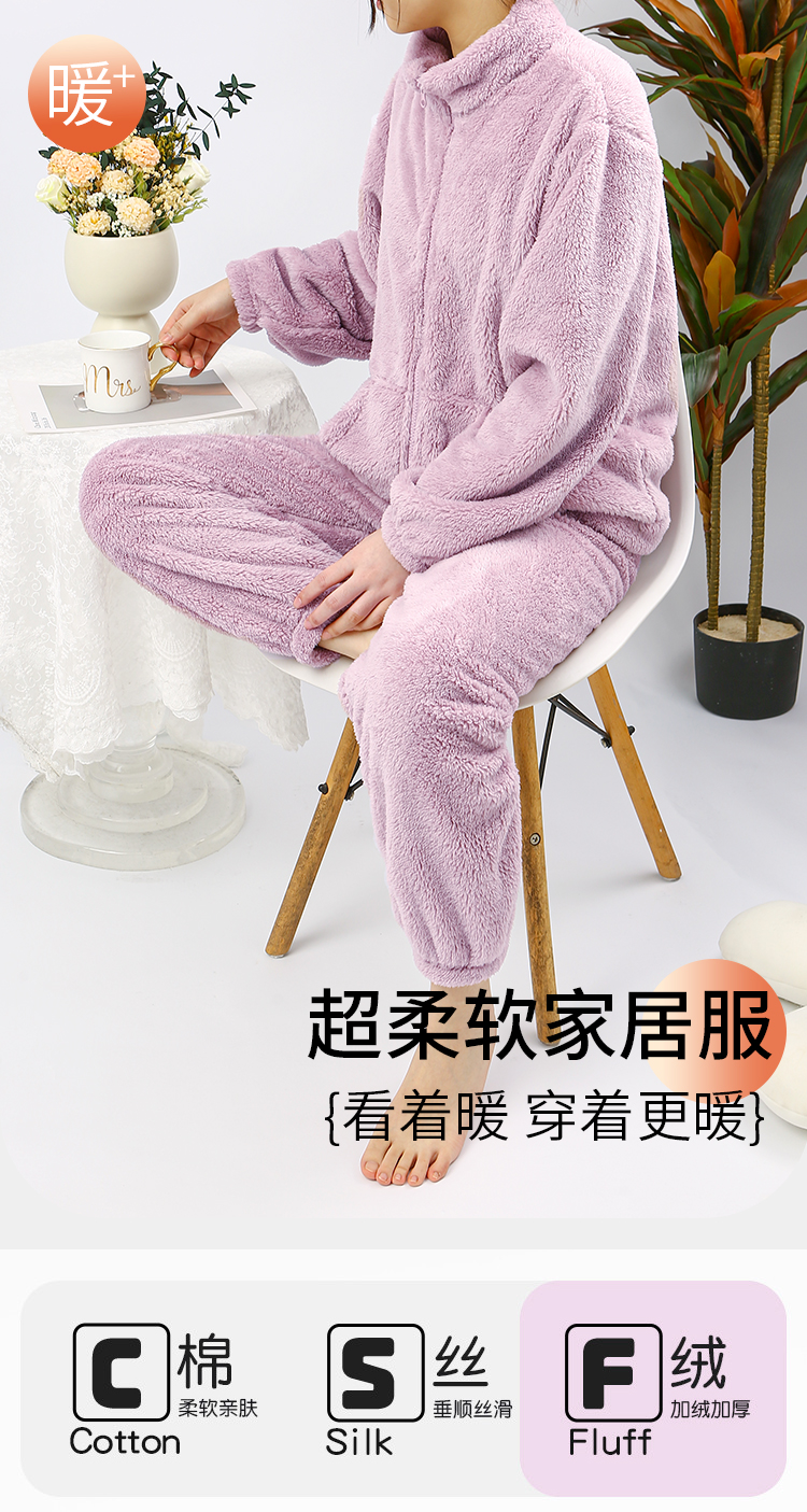 【下架】J1-润微睡衣女秋冬舒适柔软加绒加厚保暖女士圆领拉链可外穿家居服套装 阳阳暖意