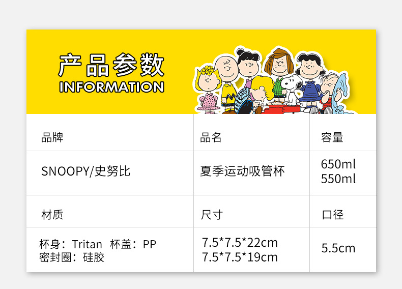 【官方授权】史努比儿童水杯吸管杯便携小学幼儿园防摔_HLY