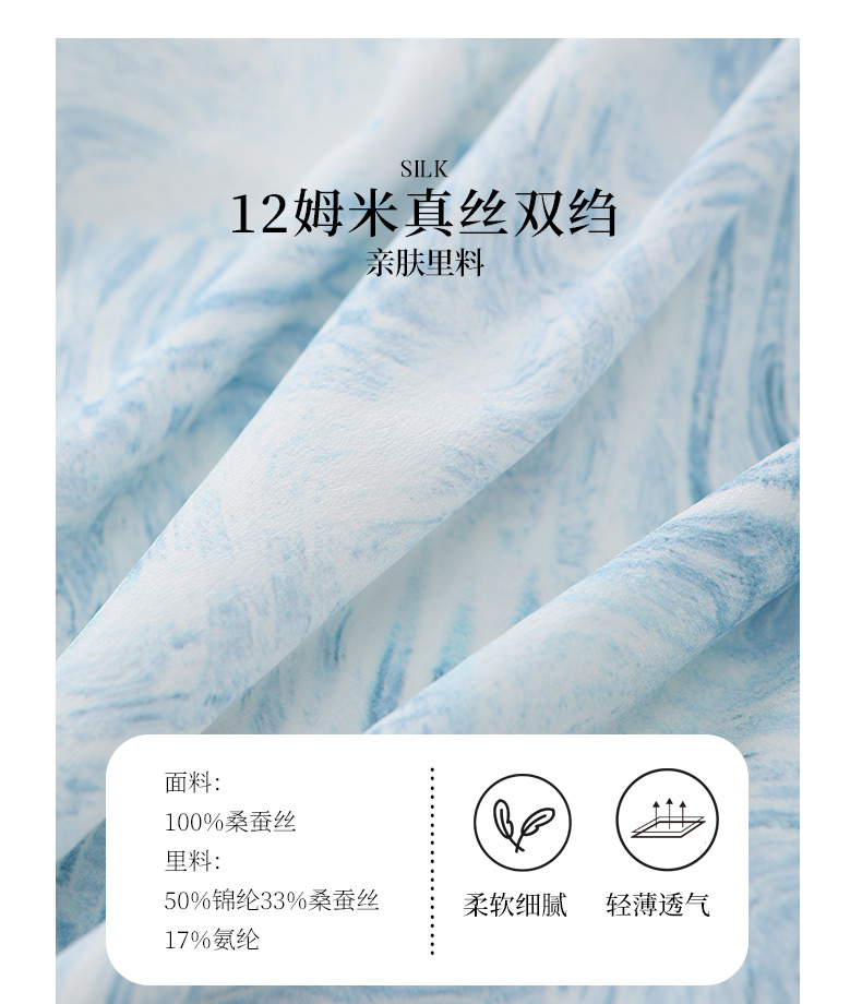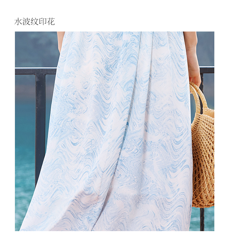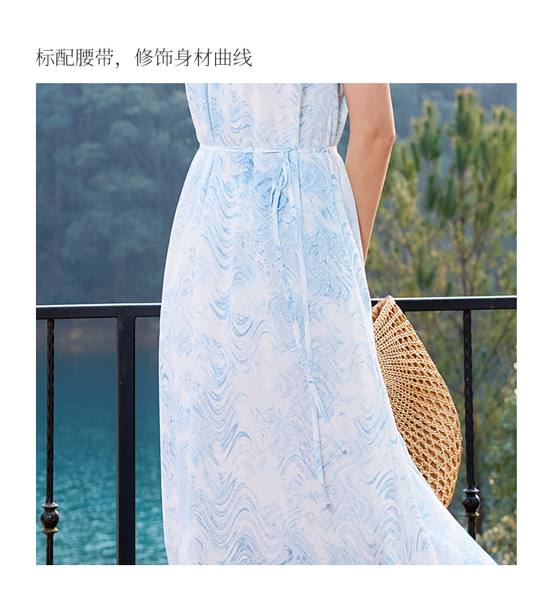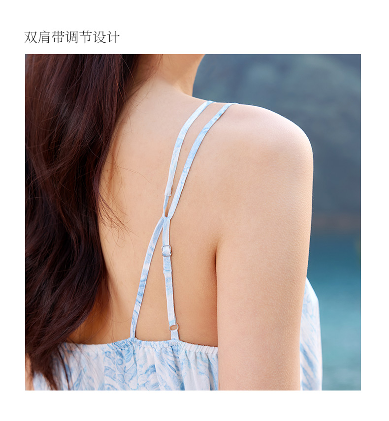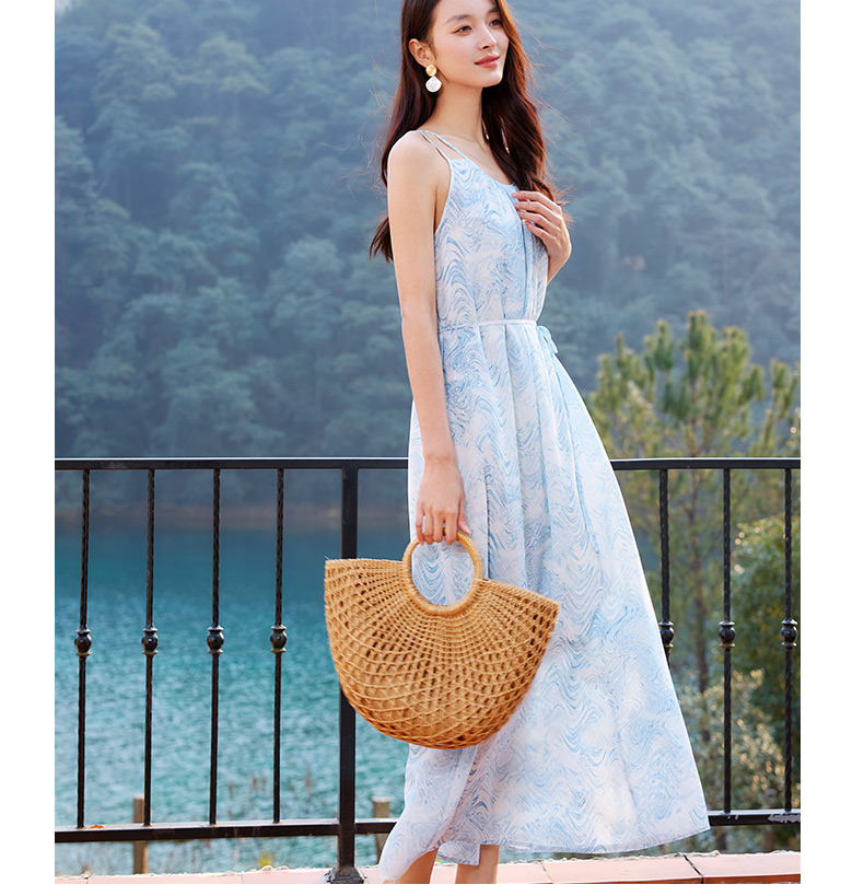 玳莎印花真丝吊带裙2025年夏季新款清新休闲系带收腰桑蚕丝连衣裙 FB35007