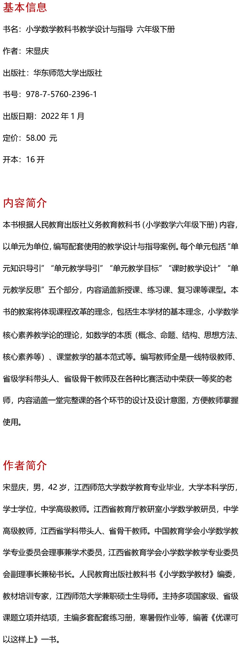 2025春小学教科书教学设计与指导 数学1-6年级下册 人教版适用